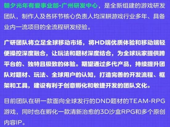 早在2022年初,朝夕光年(原字节跳动游戏品牌)曾发布过招聘公告,表示有爱事业部成立了广州研发中心,除了DND题材的TRPG和3D沙盒RPG之外,还负责多个原创IP项目。其中就包括了《汐塔》和《幽明志》。