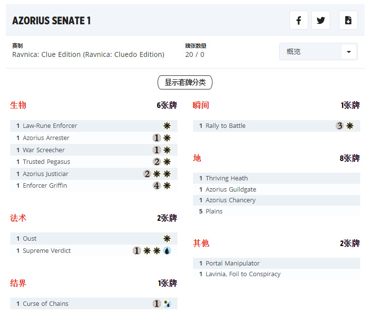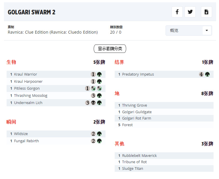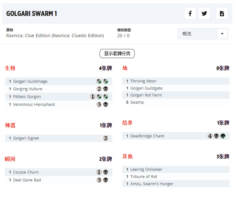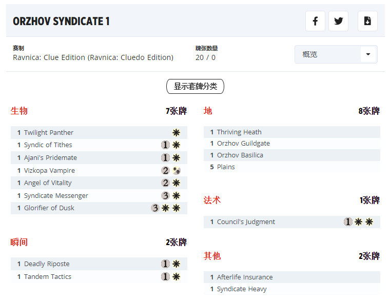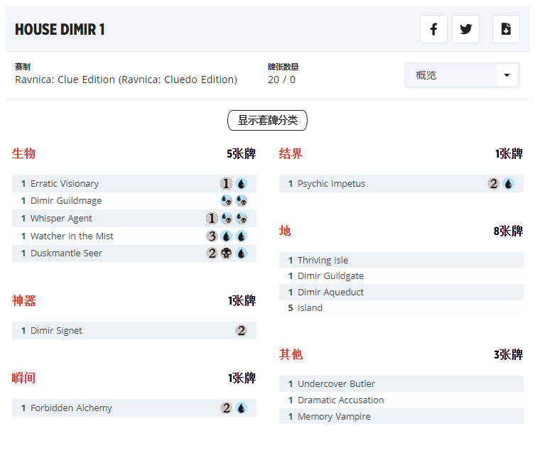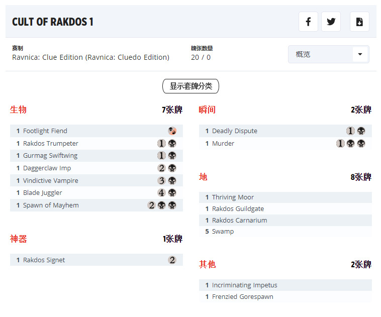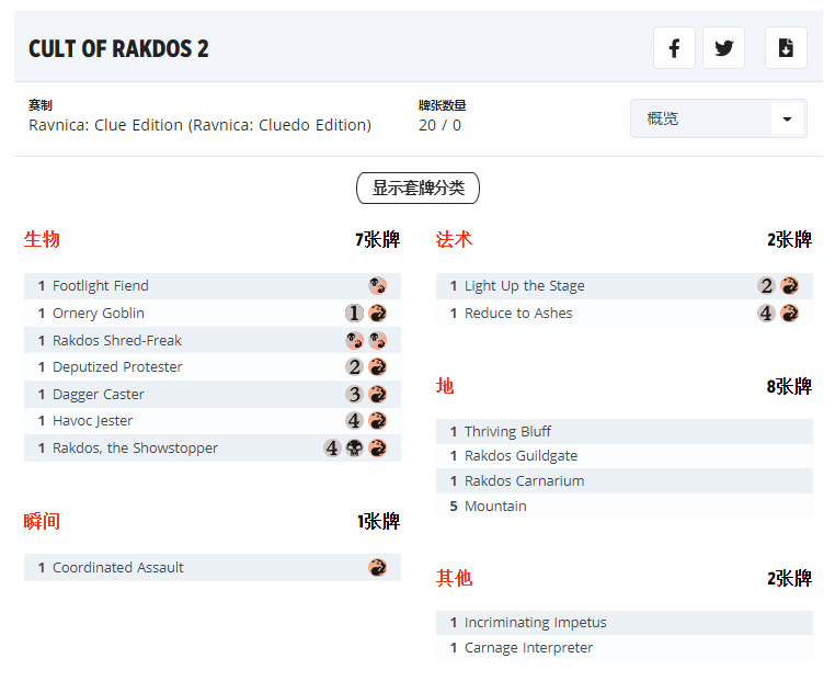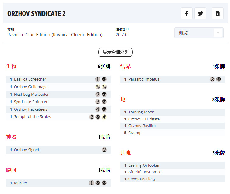 RAVNICA: CLUE EDITION(RAVNICA: CLUEDO EDITION)补充包牌张列表