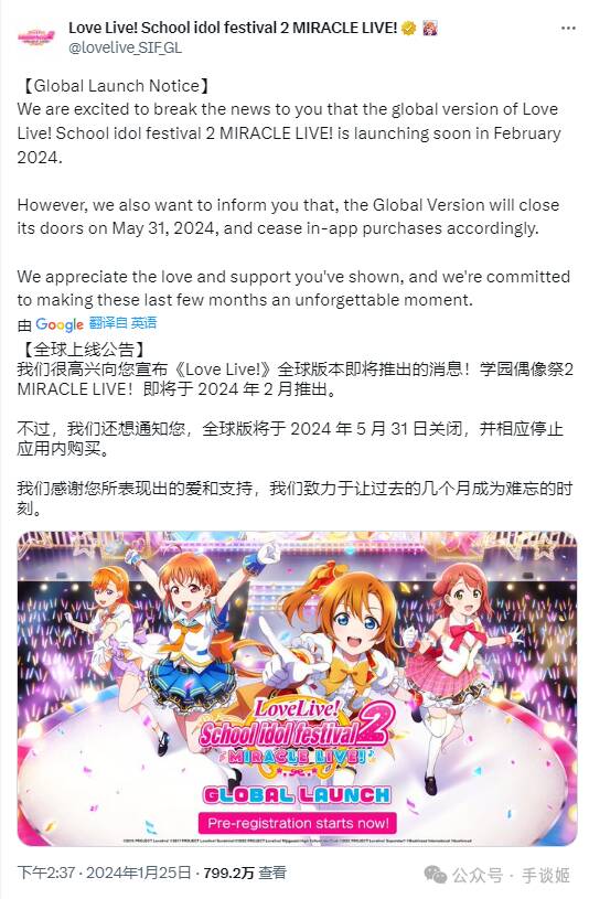 据说手游坟场SE有着“运营超过9个月就算胜利”的说法,而最近则有款“还没开服就宣布关服”的游戏,它就是国际服《Love Live!学园偶像祭2》,官方简称《sif2》。