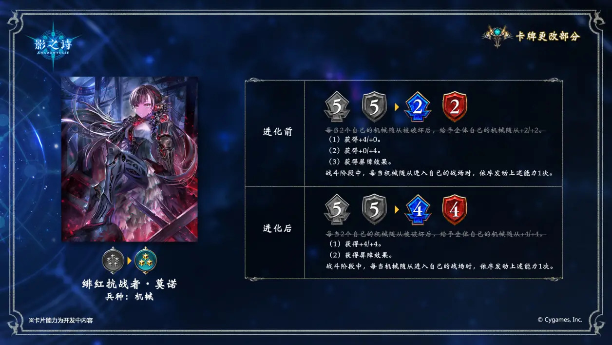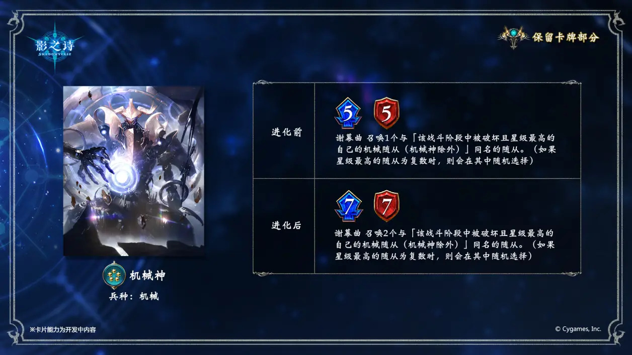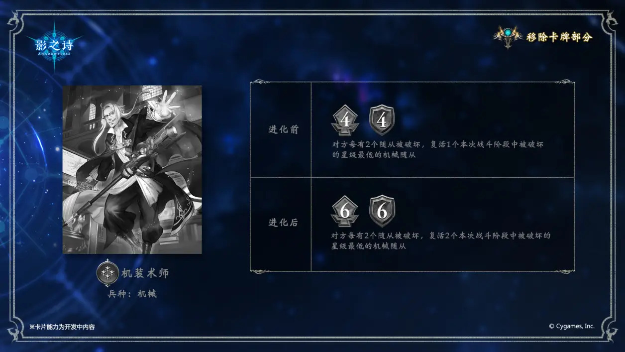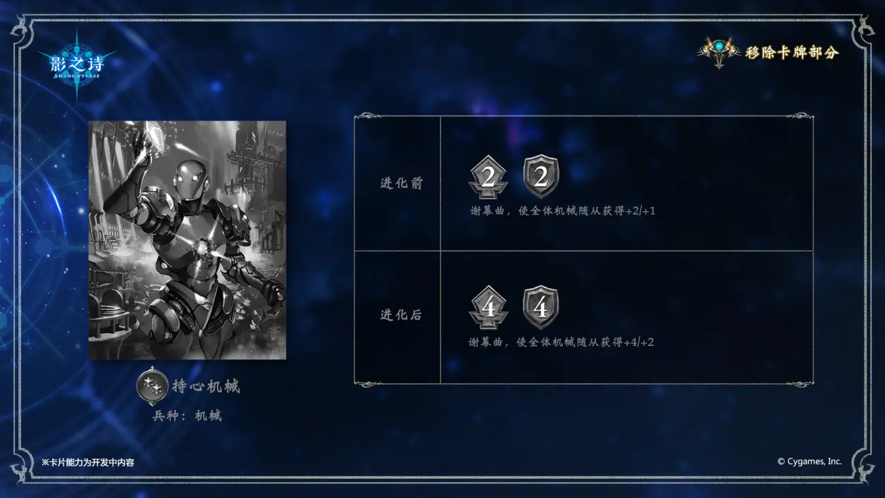 此外,机械兵种中将有4张卡牌暂告缺席,他们分别是: