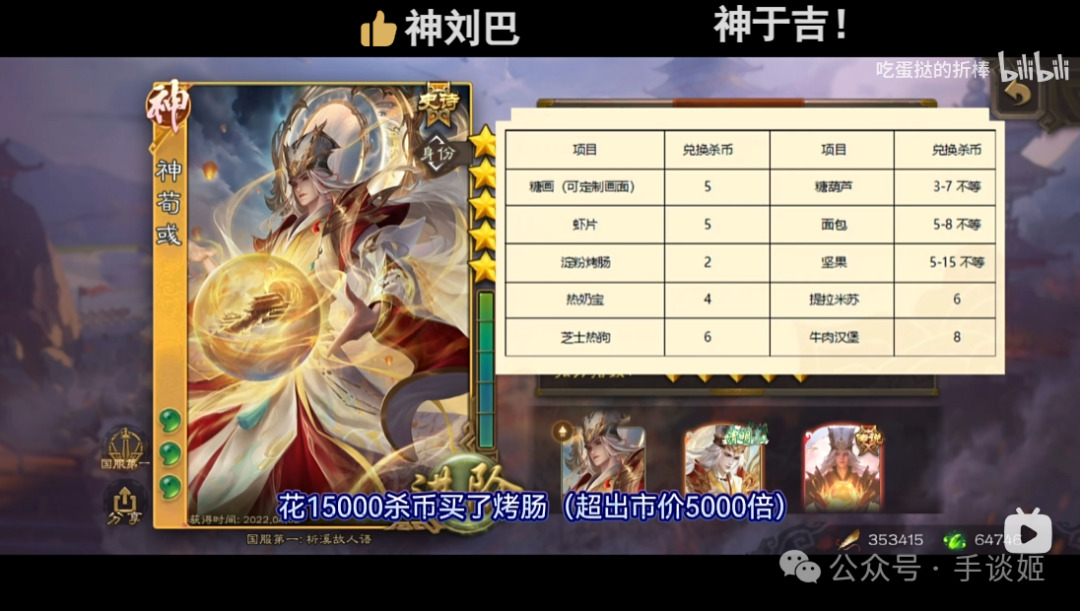 而除此之外,根据参与者介绍,活动每晚还有一个“拍卖会”活动,众人可以通过杀币来竞拍一些特定的商品道具,其中每晚的重头戏是这个游戏的神将。