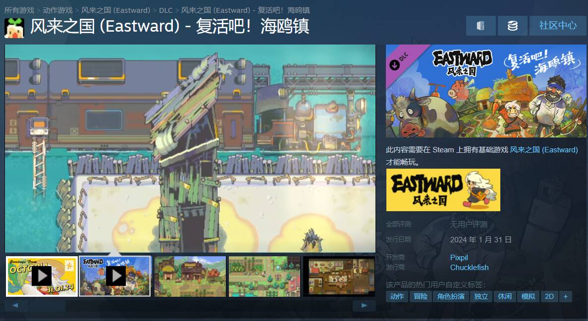 DLC《复活吧!海鸥镇》将于1月31日在Steam、WeGame、蒸汽平台和Nintendo Switch同步发售,原价22元人民币/33港元/5.99美元,首发将会开启限时特惠,如果你想要感受末世历险和田园生活的双重体验,欢迎将游戏加入Steam愿望单。