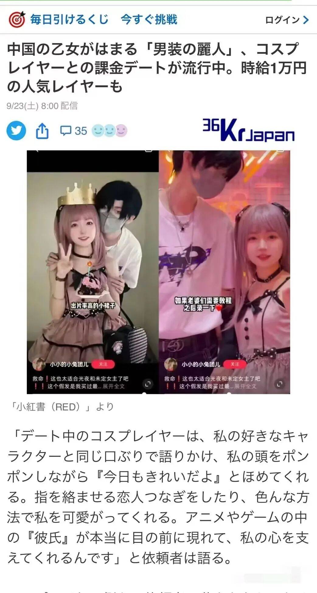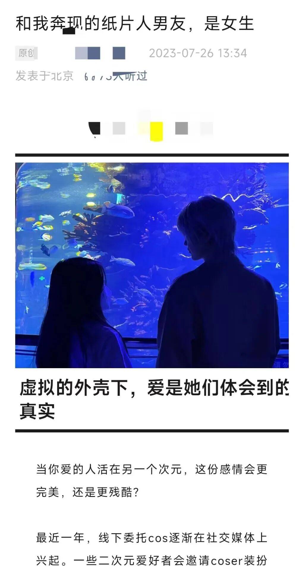 最初的时候,cos委托因其能满足与纸片人陷入恋情的少女们的幻想,给无法逾越次元间隔的恋人们一次陪伴的机会,甚至还被与二次元完全不沾边的媒体报道过(也有海外媒体报道了)。