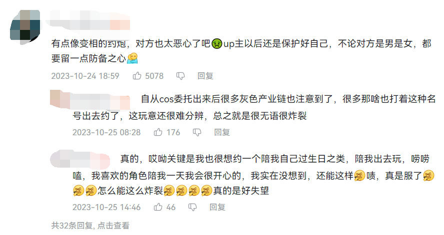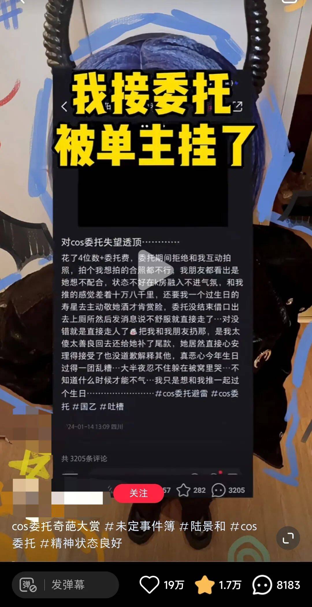 这样的事情并非个例,cos委托从出现至今,怀着各样目的不断加入的新客群新coser让这个曾经的梦幻业务味道变得越来越奇怪。