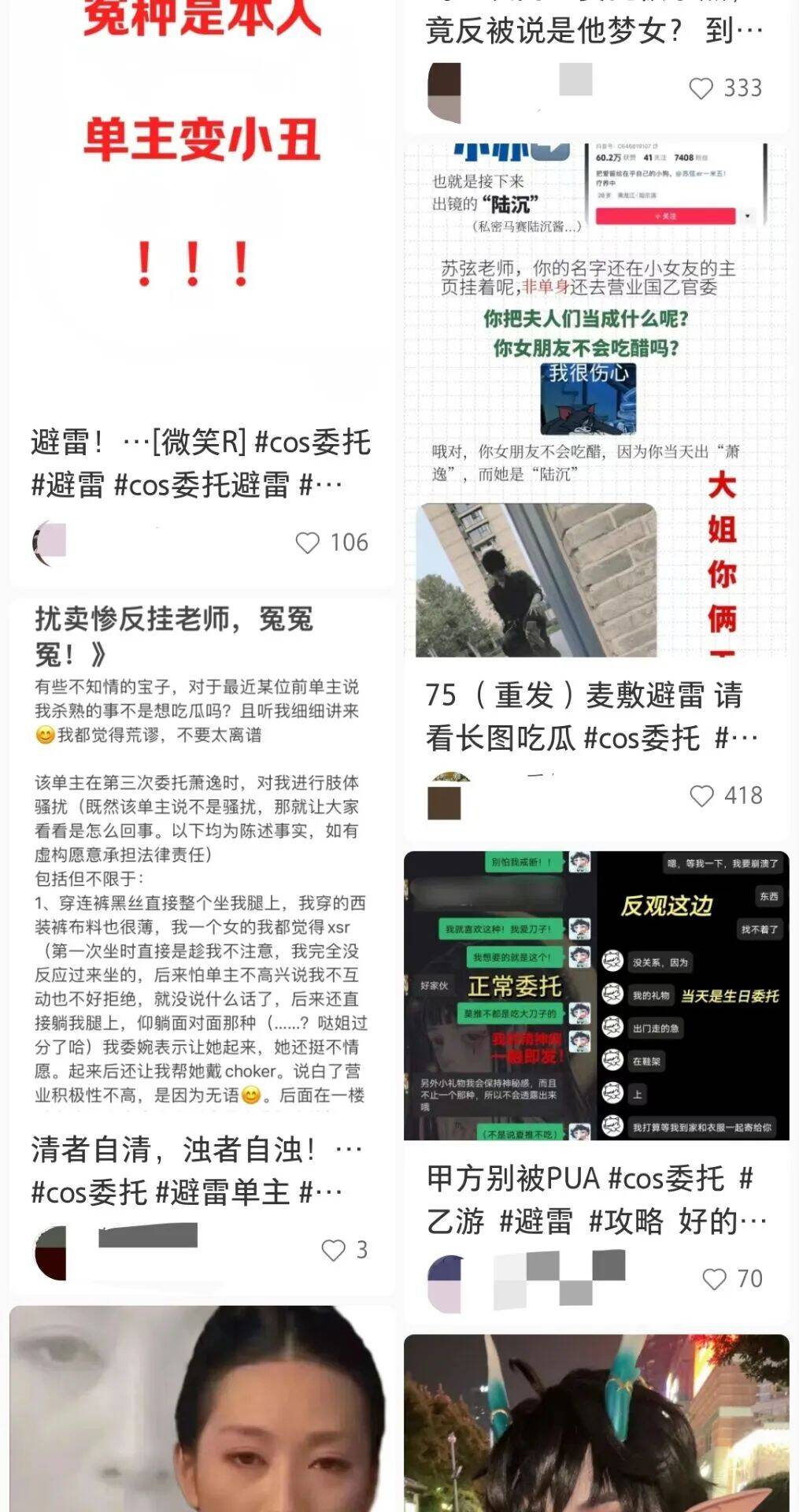 而那些接收委托的普通coser则没这么便利的避雷客人清单了,大多都是靠自己发帖避雷互相告知(也可能圈子有私底下的表格,但由于coser遍布各地,想必并不是那么周全)。