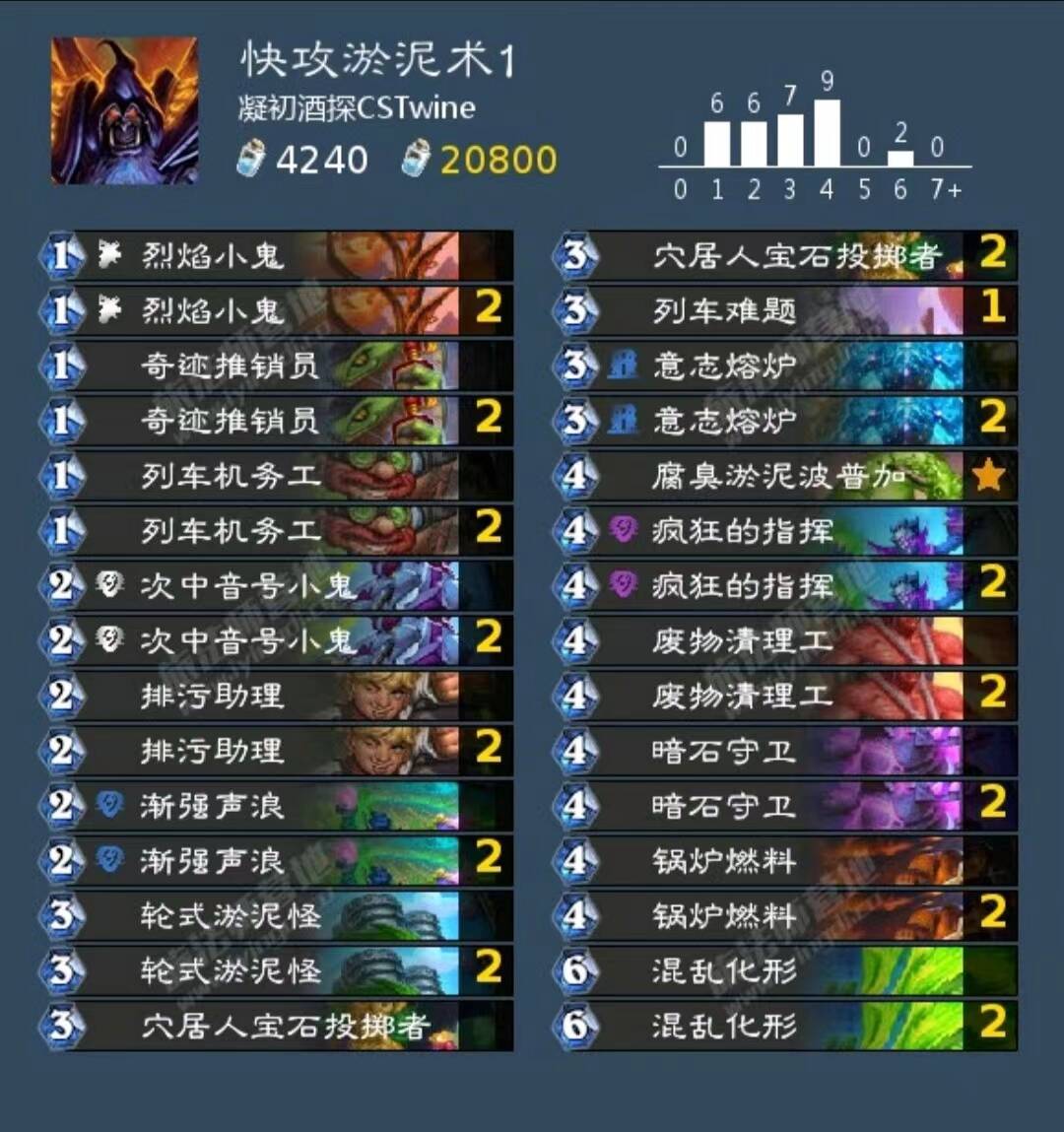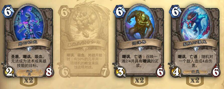 根据上面的对局思路,笔者认为淤泥术的1费曲线并非像传统快攻那样重要,因此并没有留给1费太多卡位,也有很多构筑选择二者舍其一。