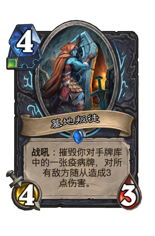 - 先讲病DK的对局思路,笔者的理解是直接舍弃低费曲线全力找3费地标,次要找4费大哥(毕竟大概率有4张)。病DK常见构筑基本都有2自埋自收,2殉船,2墓地叛徒,有故事的病DK还会带上硬核信徒,所以低费节奏其实不是那么好抢。至于牌库中的淤泥桶会很容易被塞病打乱。因此地标大哥连拍会成为我们最重要的制胜点,女王或者雷斯卡这时都难以发挥作用,常见病DK构筑对付地标大哥的手段只有一个:就是塞够病后下链缚守护者。即使是在对面塞了6张病的情况下,这张卡仍然需要5费。