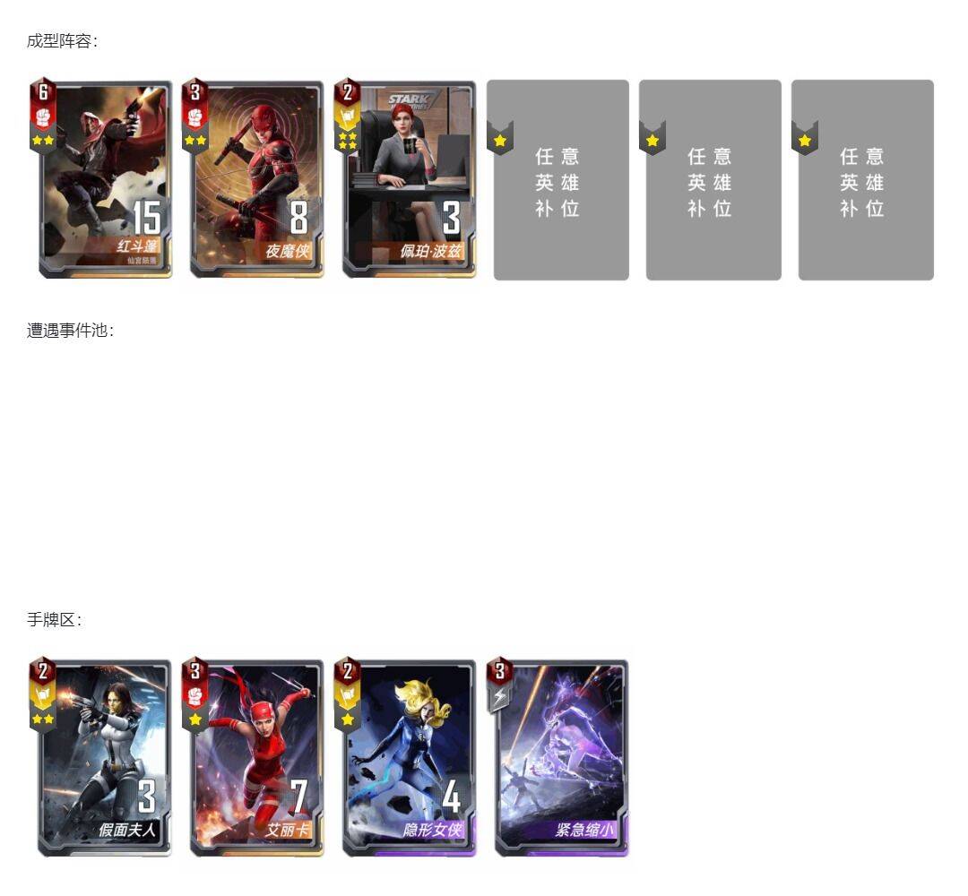 上五本之后,用来找隐形女、夜魔侠、铁拳、艾丽卡等关键牌;前期滤好牌库,一找一个准。