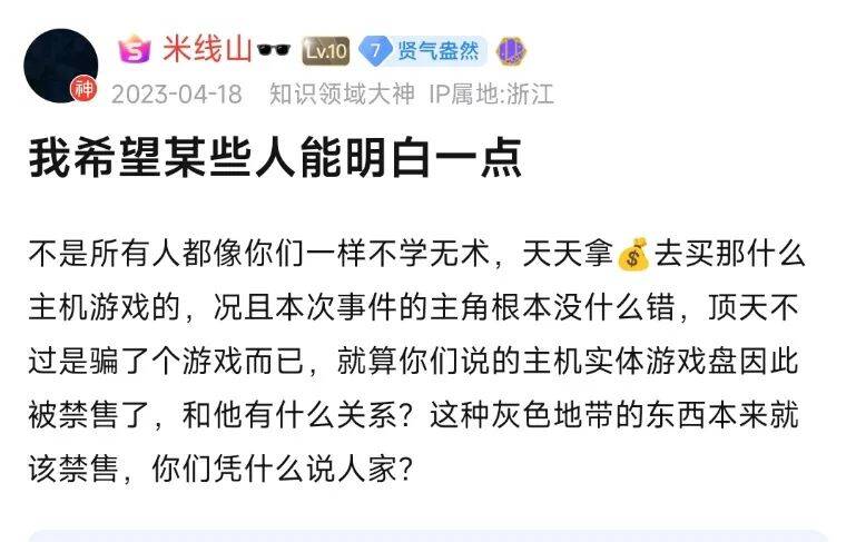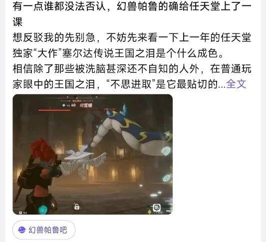 但若是翻一下楼主的发贴历史,就能看到在前一天他才发表过对《幻兽帕鲁》表示肯定的言论,认为今年年度游戏非其莫属。