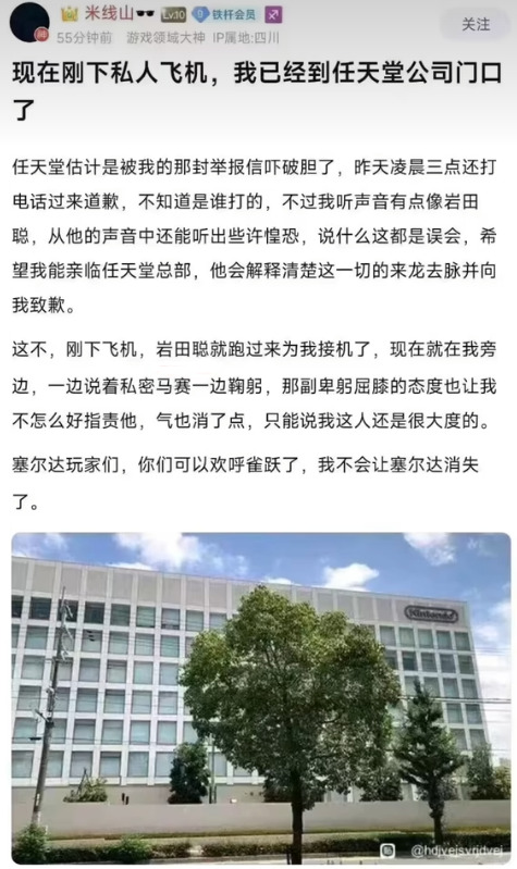 在他的描述中,任天堂被他一封举报信吓得那是肝胆俱裂,已经离世8年的社长岩田聪更是亲自通灵向他道歉,甚至还能给他接机。但是,如果不是真懂任天堂,他能为网友贡献如此经典的人造幽默吗?