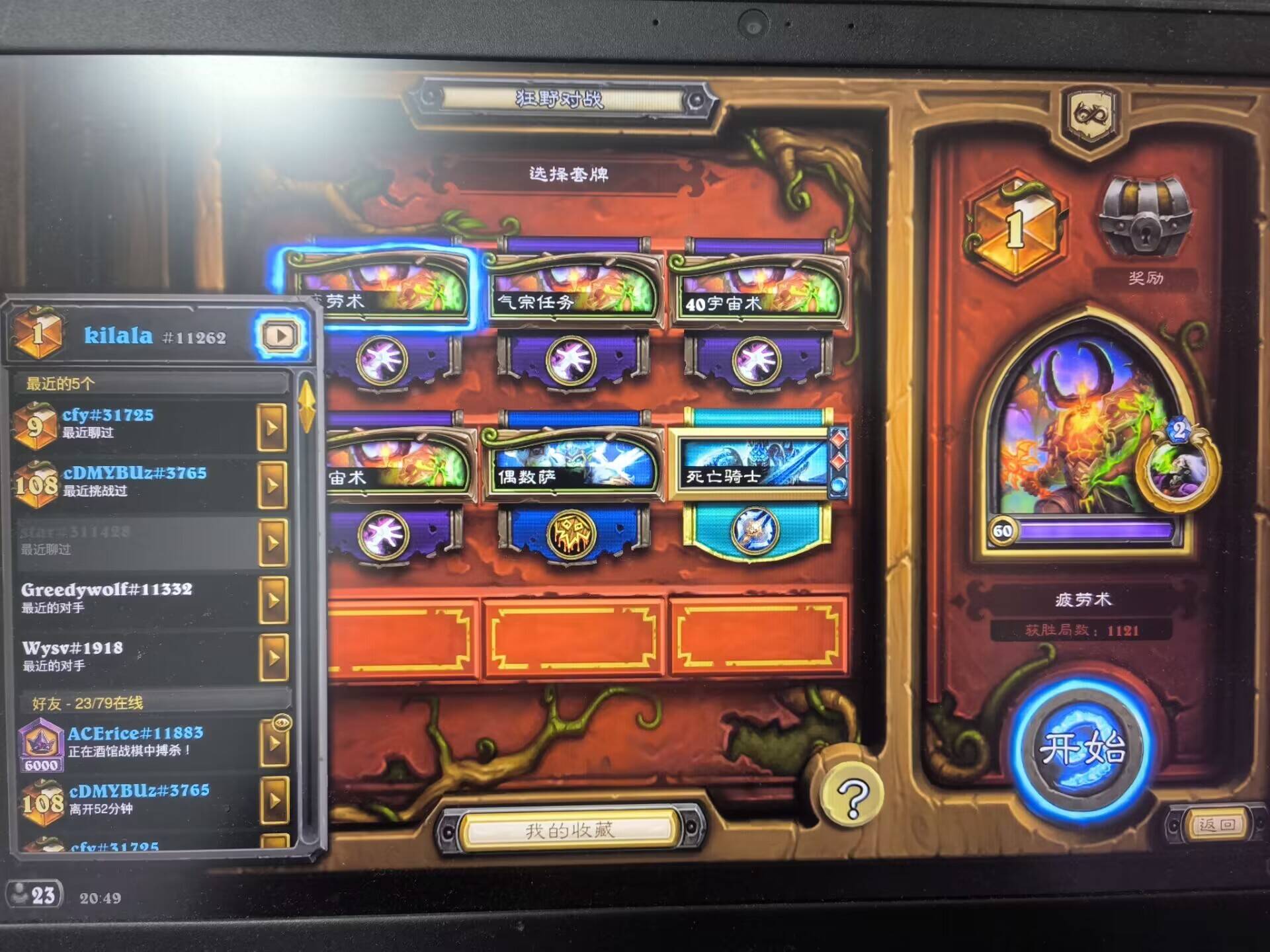 在对局时,卡组分为盗贼/德鲁伊,其他职业,暗牧三种对局。