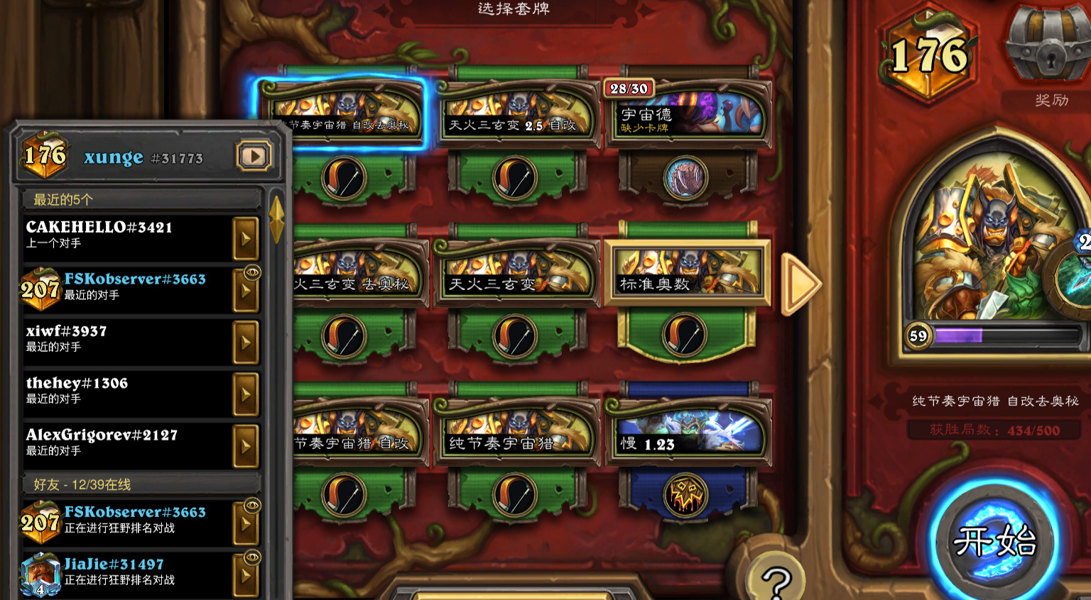 来自xunge的节奏宇宙猎,他使用这套卡组打到150名(截图未更新),以下来自投稿人自述(有删改):