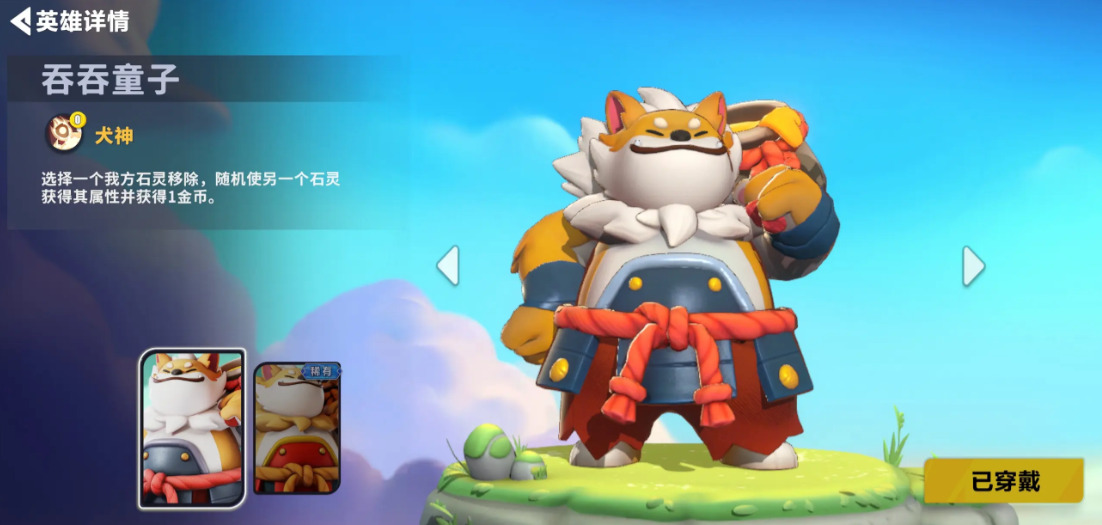 技能介绍:犬神技能可吞噬一名我方已经上场的石灵并且是其他上场的石灵随机一名获得已吞噬的石灵属性且吞噬石灵获得一枚金币。