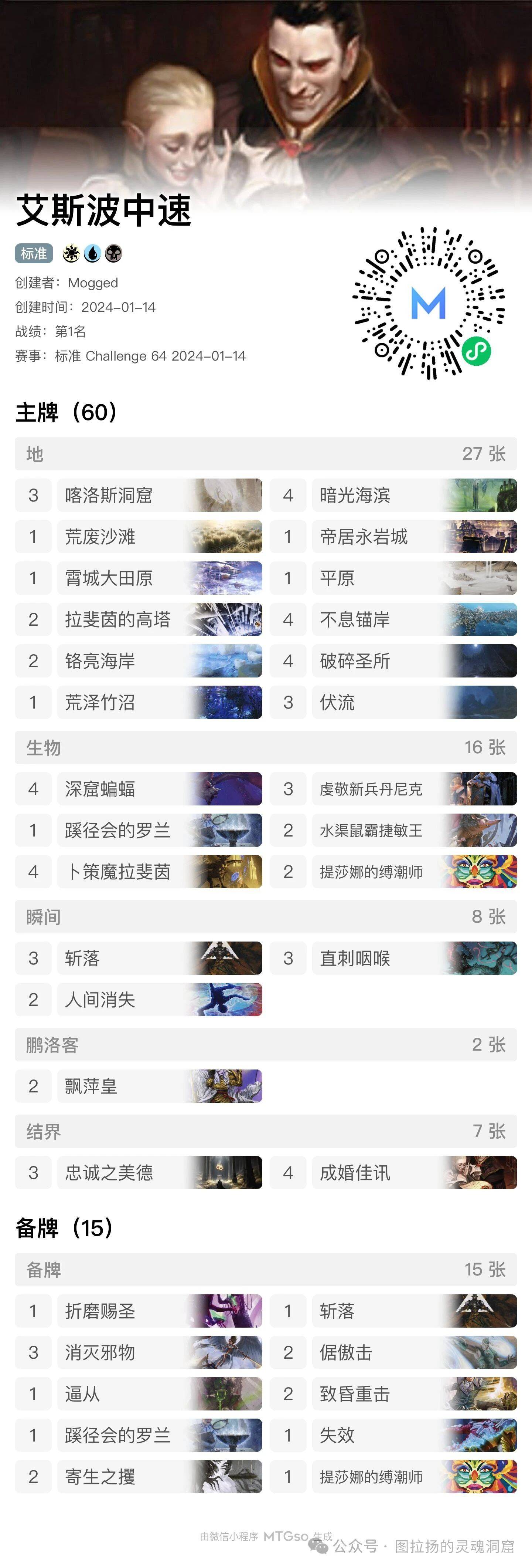 如果你不想选择上面的每一套牌,或许都有些能具体拿出来说的理由,但选艾斯波的话,好像也只能说容易卡色了。比起蓝黑它生物质量更高,比起白蓝有去除,比起黑绿红黑又有反击咒语和飞机,它很全面,除了有时候横进地,或者得烫血甚至是干脆的卡色。