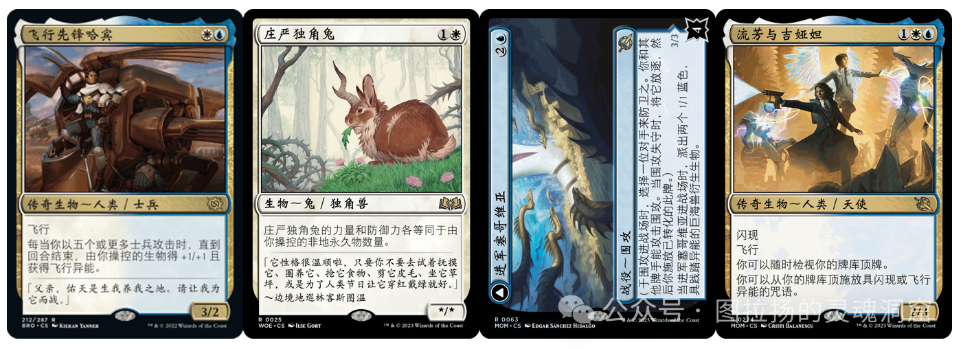 白蓝双色的生物套牌五花八门,有更偏铺场的白蓝士兵,有独角兔+进军塞哥维亚的白蓝衍生物,还有带白蓝TT的白蓝闪现。