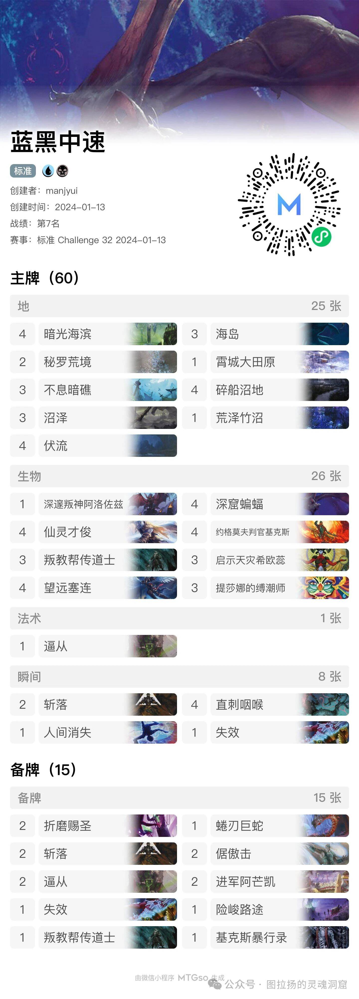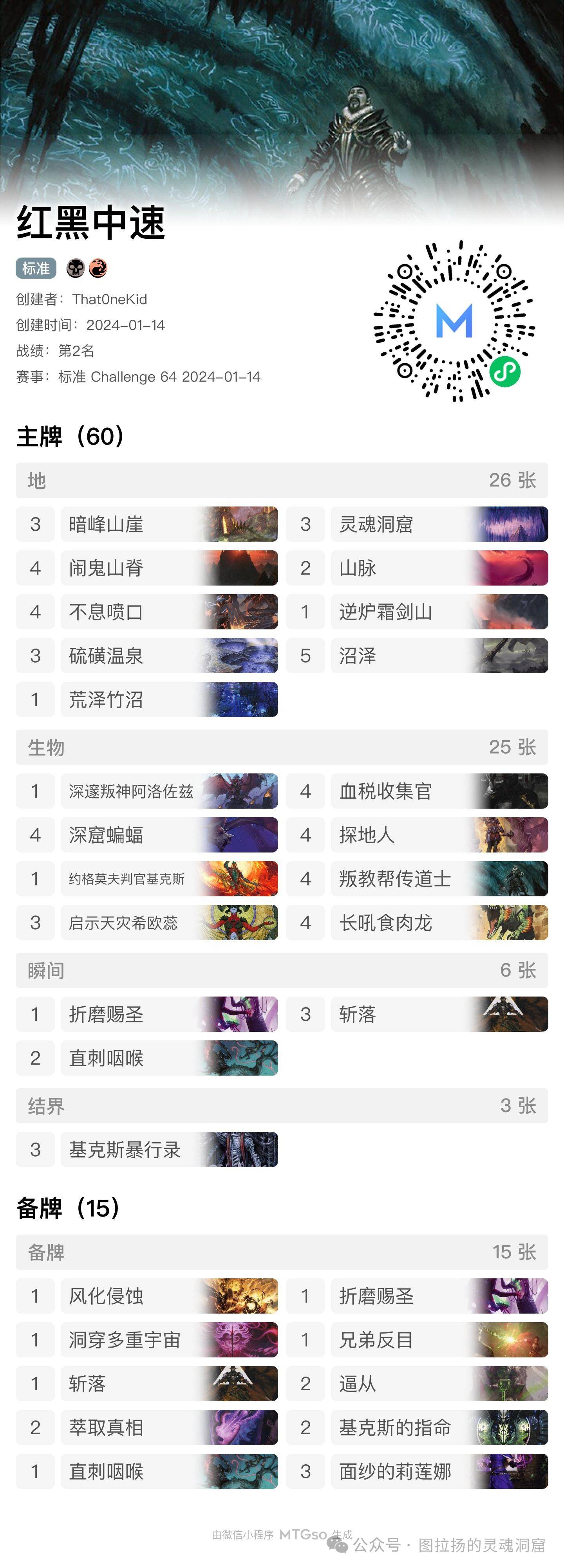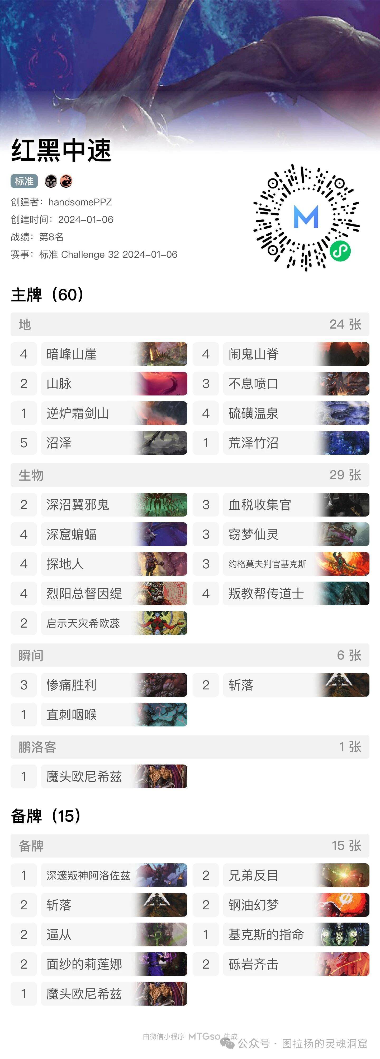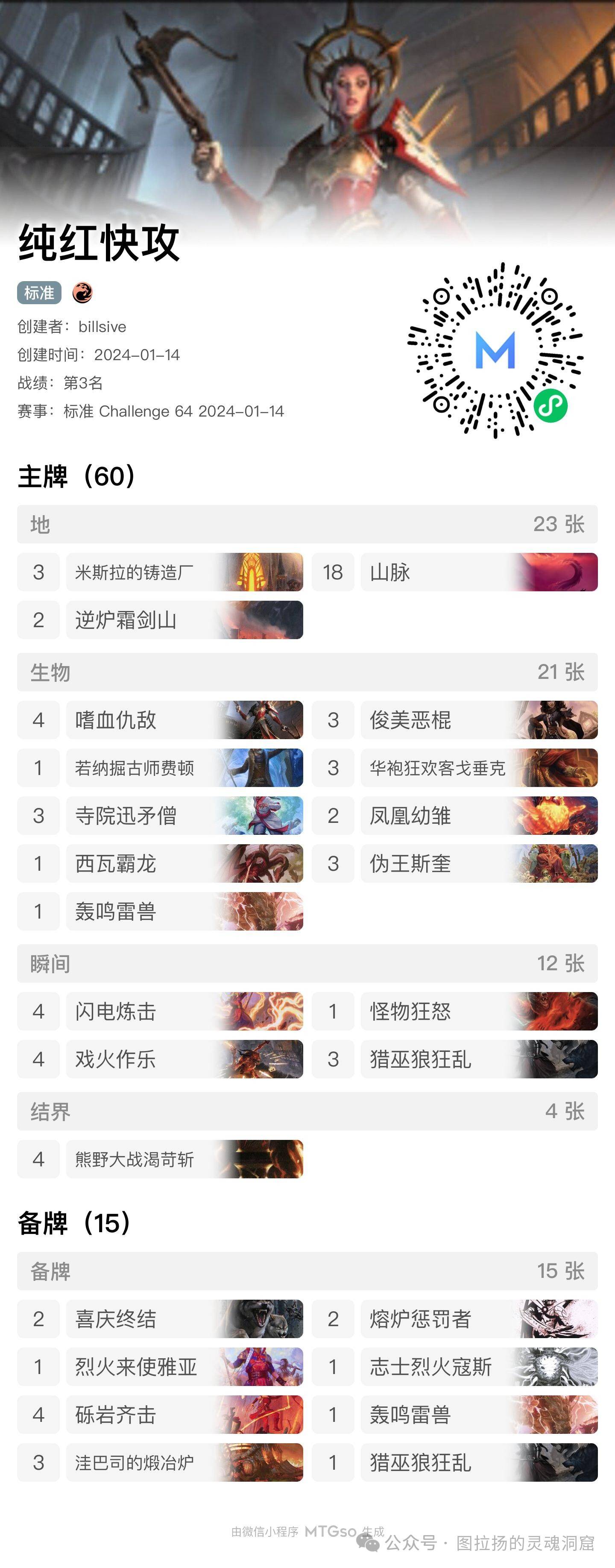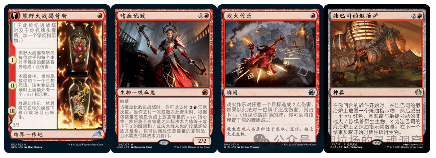 快攻套牌的标杆之一,拥有较多合理的敏捷生物和最强一费曲线熊野大战唐可可,主牌去除基本都有打脸选项,节奏拉满,备牌局可以用旅法师和炉子去战胜换入大量生物短去除的对手。