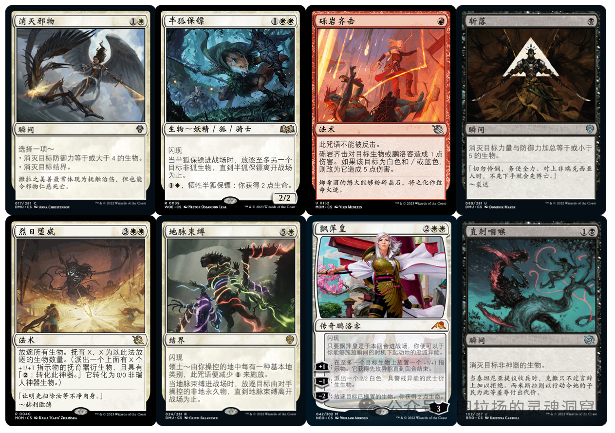 这些威胁和去除可以说是在动态的互相成就,好的威胁由于相较于同费用颜色竞品能躲过更多去除而被使用,优质去除则是覆盖面更广更高效而被投入复数张/主牌。