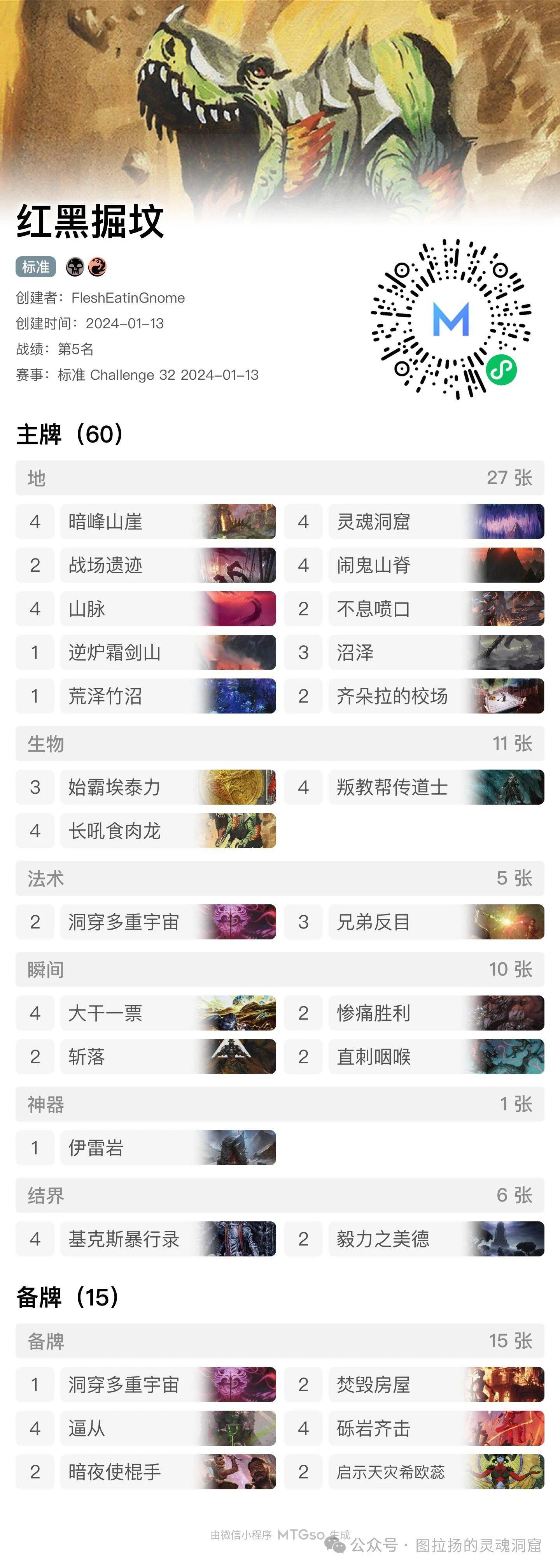 除此之外也有牌手组出更厚的红黑掘坟,使用788大恐龙和洞穿,当然下限肯定也变低了不少: