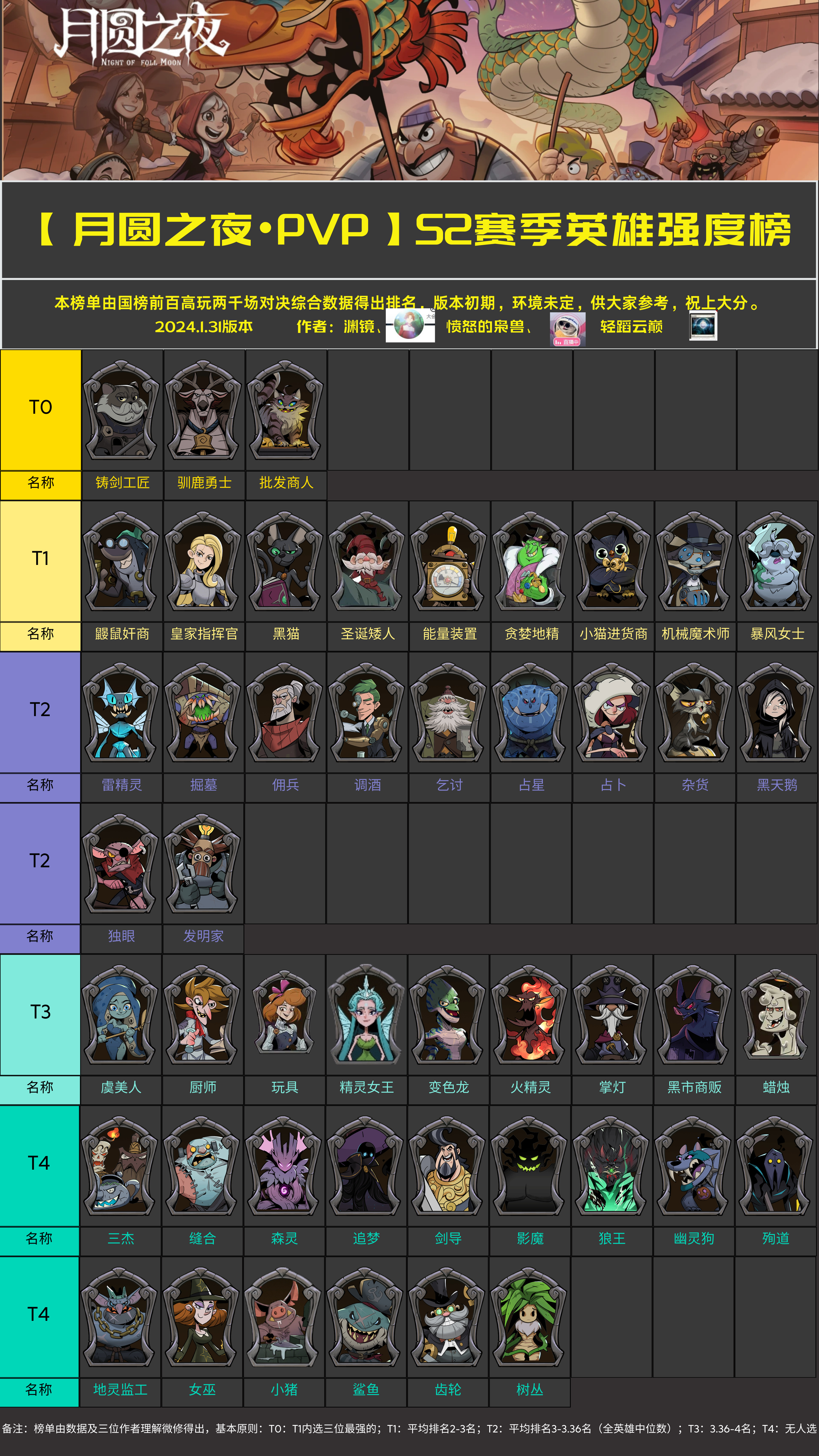云巅从去年11月起每周综合一千场数据制作强度榜,持续两个月,在各路大佬的检验下,最终验证他的强度榜的确客观、公正、有效,很喜欢他上赛季说的一句话:“我不知道鼹鼠哪里强,但是数据告诉我他强。事实证明,数据是对的,鼹鼠很快就成为了版本霸主之一。”本强度榜结合枭兽、渊镜、云巅的理解微修而得,新系列麻烦兄弟们支持一下,点赞破1088,七天内跟进一期最新的强度榜。