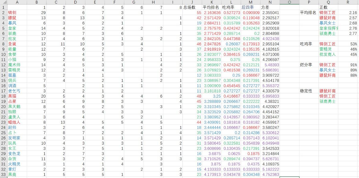 这次按平均排名进行排序了,方便大家观看(只放了第二期--一千场)
