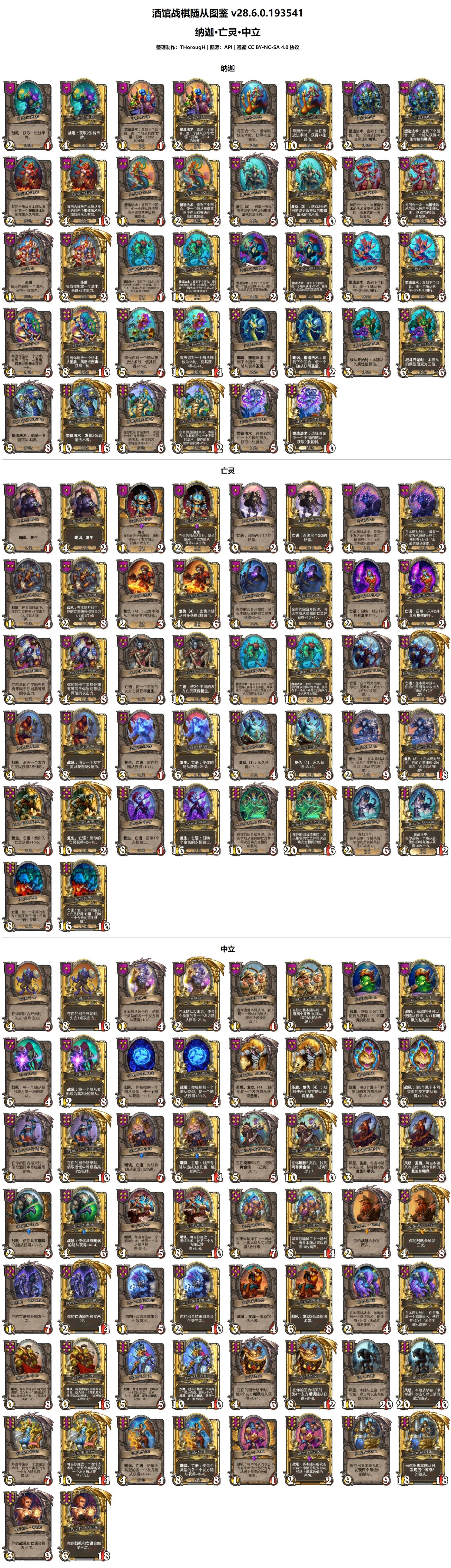 本次更新采用官方API图源,部分随从的金色版卡图缺失,敬请谅解。