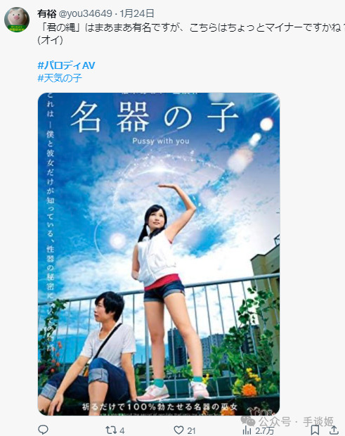 这里戏仿av,当然是在说以tma为首的那堆碰瓷二次元的av了,手谈姬虽然一部也没看过,但是对于这些封面也略知一二。然后不知为什么,一些网友就分享起这些封面来了。
