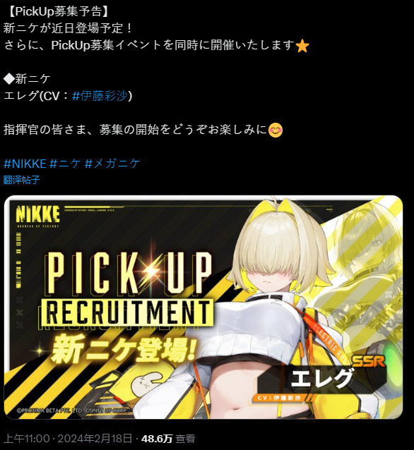 2月18日今天,人气手机游戏《胜利女神》官方公布了即将登场参战的新角色女神艾蕾格设定艺图,一起来了解下。