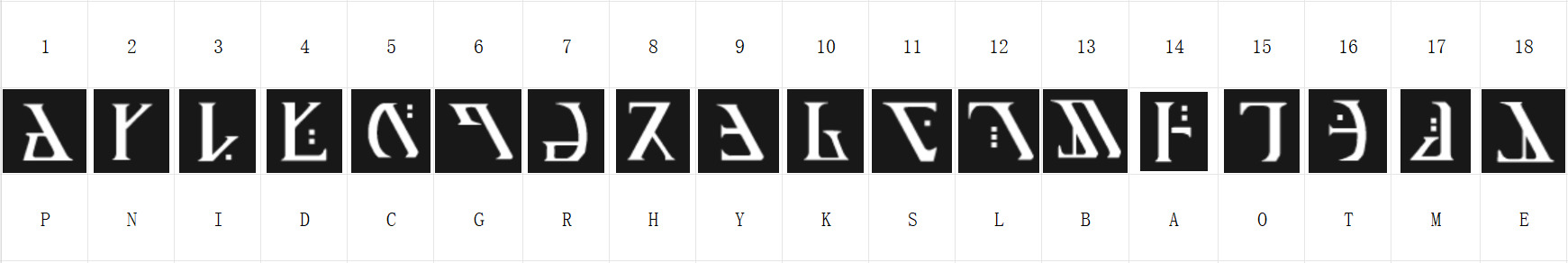 因此,首先需要推导出密码械每一圈的符号顺序。首先,将密码械上可以分辨的符号按顺序排出