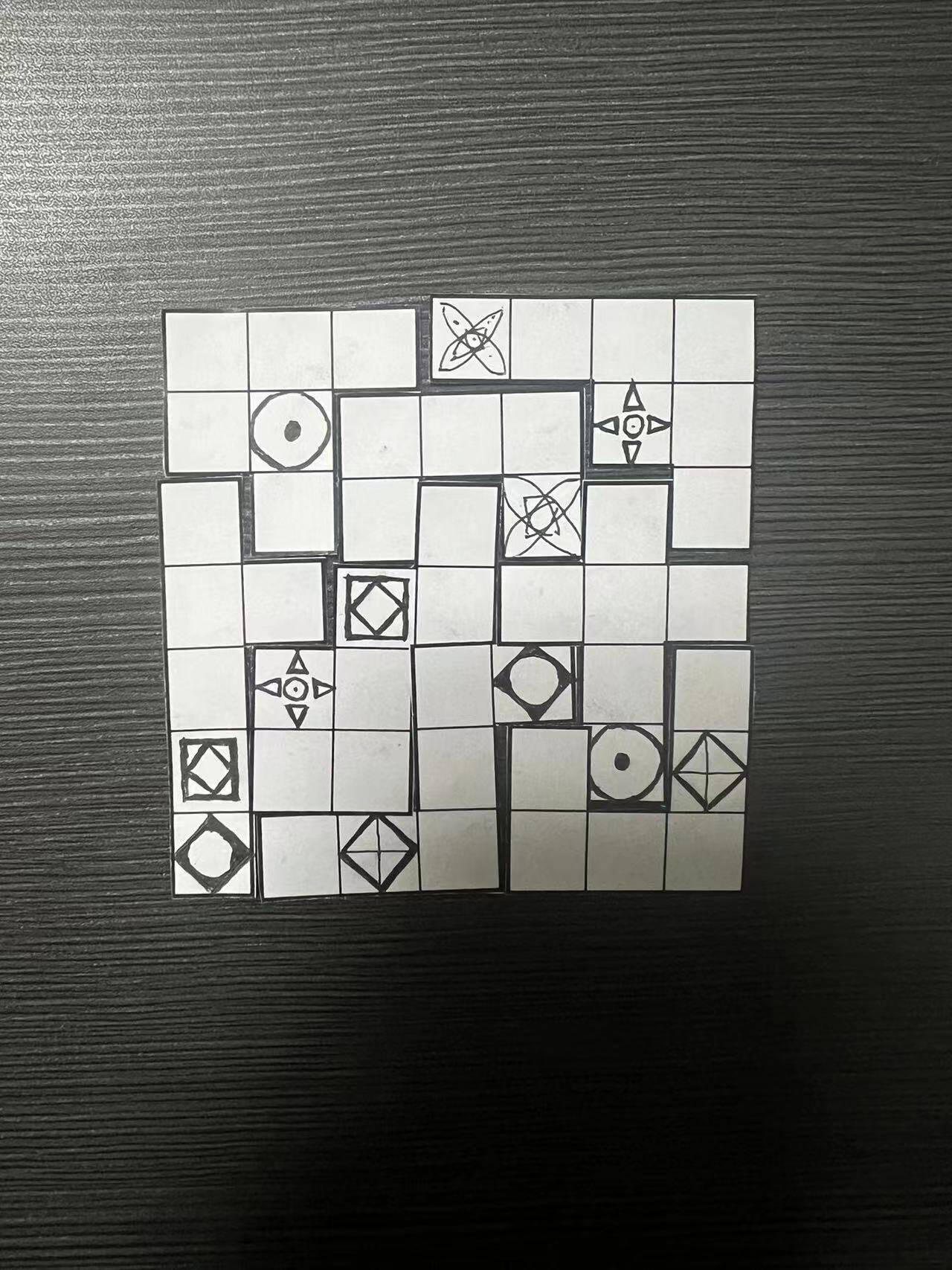 对照提示将一笔画完成后,画在案件网格中,得到如下图样。