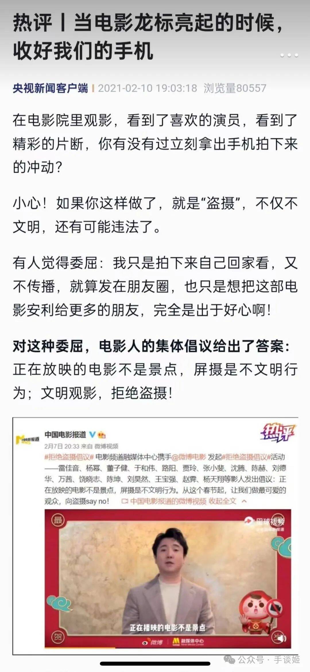 不过,从尊重创作的角度来说,手谈姬还是更加支持影迷的行为,有能力支持正版发展的还是应该支持,虽不能做到制止所有人去屏摄,但对于身边的人来说,还是会适当进行劝阻的。