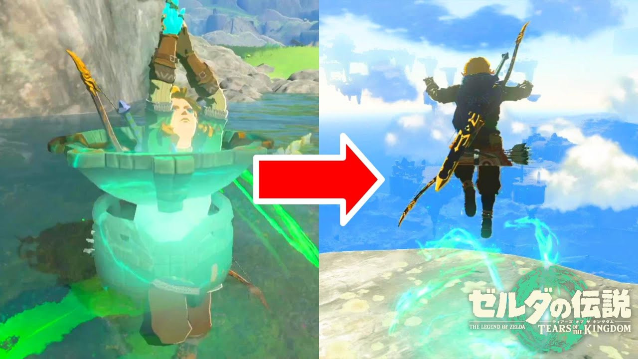 而要利用这个技巧,林克必须位于达到肩膀的水体中,手举便携锅或者松达木牌等较薄的物品,之后就能使用通天术直达空岛。