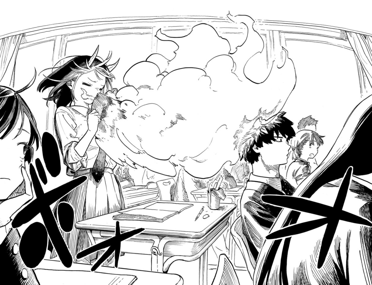 但青木琉璃头上长角、口中喷火的龙和人的混血天赋还没发挥,漫画就因真藤雅兴身体不适而宣布休刊。