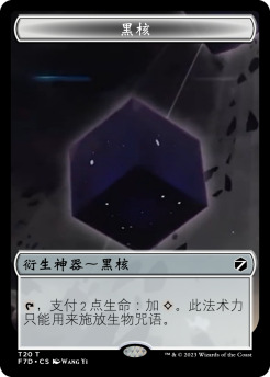黑核衍生物是衍生神器,它具有「{T},支付2点生命:加{C}。此法术力只能用来施放生物咒语。」