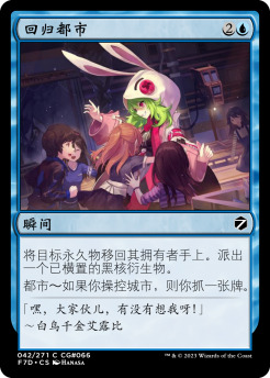 在交界都市,人脉必然是一项生存的关键。此系列中有一些牌便是检查你的人脉关系的;只要你操控了七个或者更多的非地永久物,那这就说明你为了人脉一定做出了不小的努力~努力终会有汇报的。