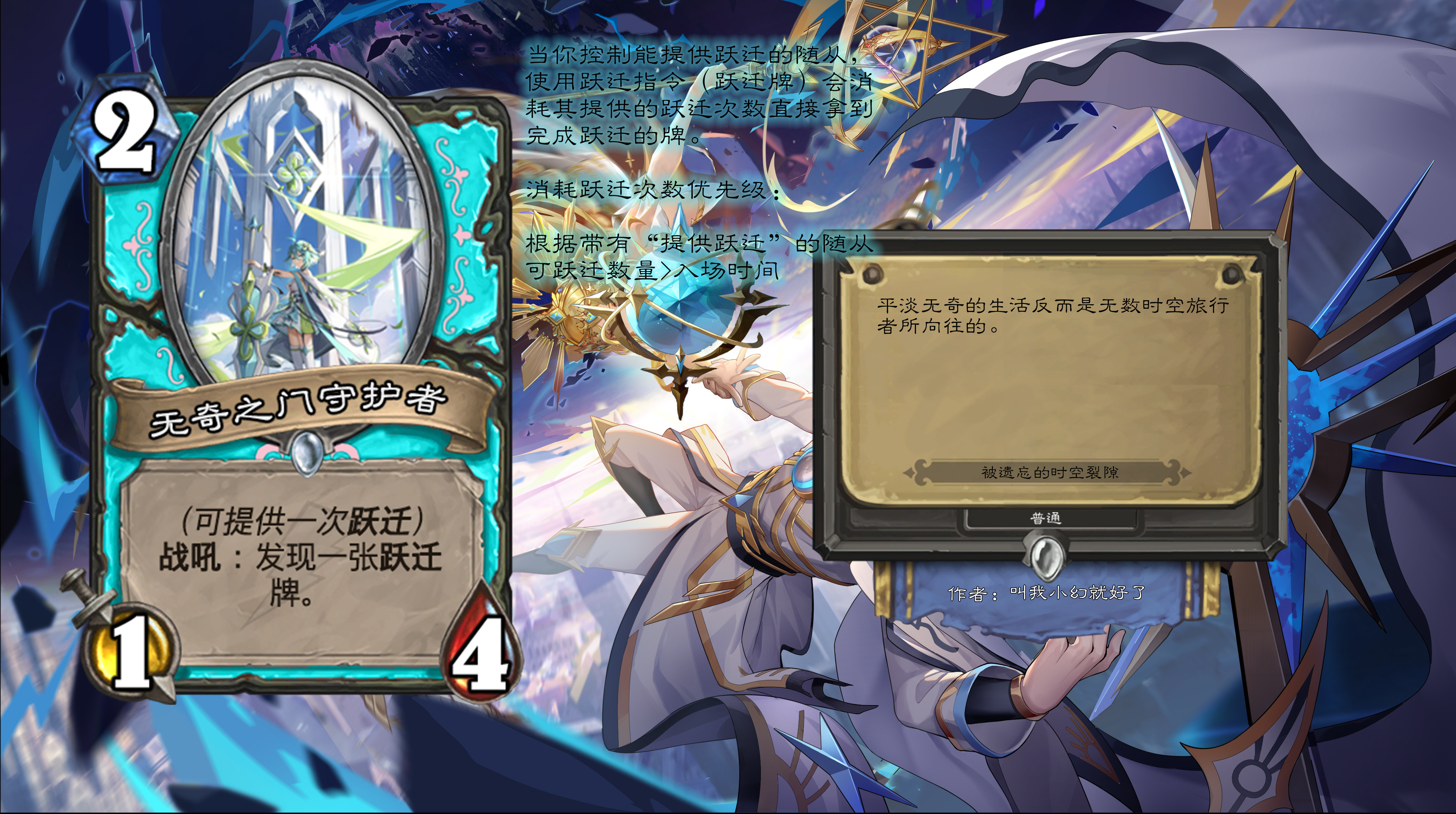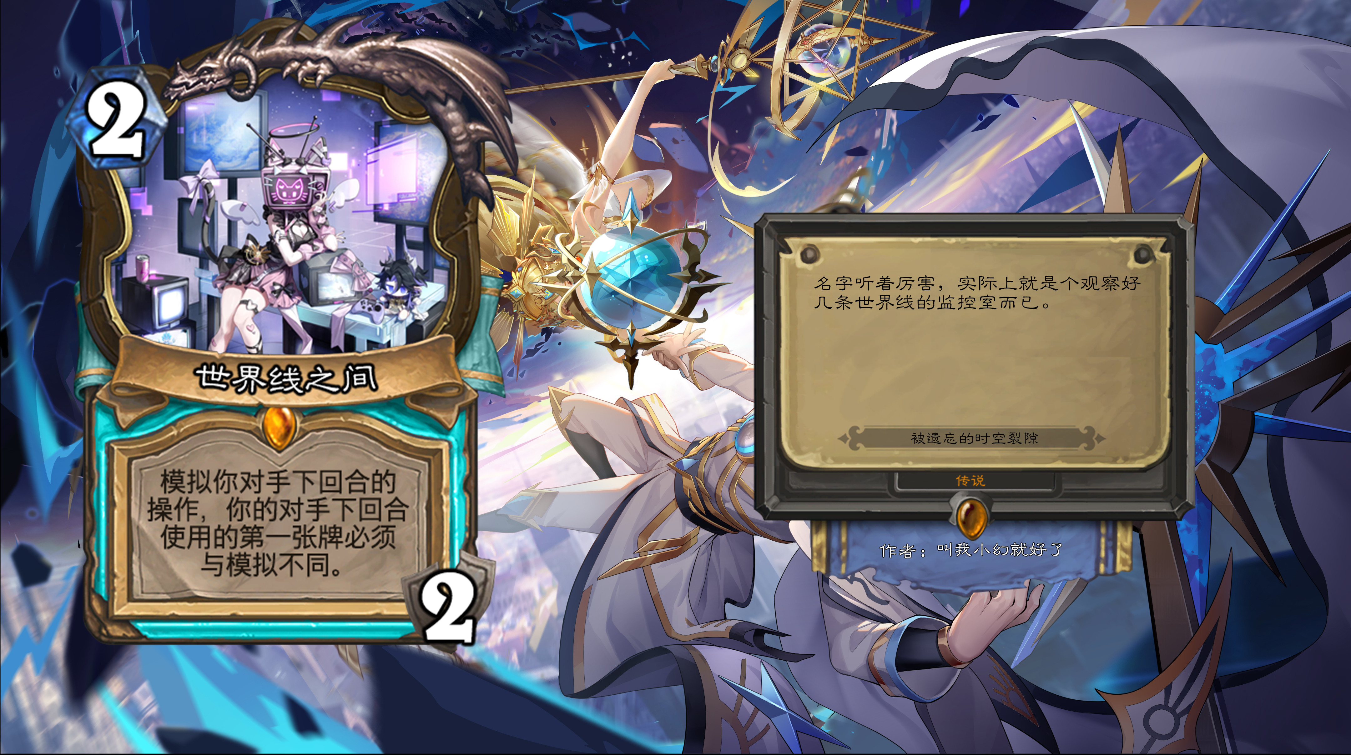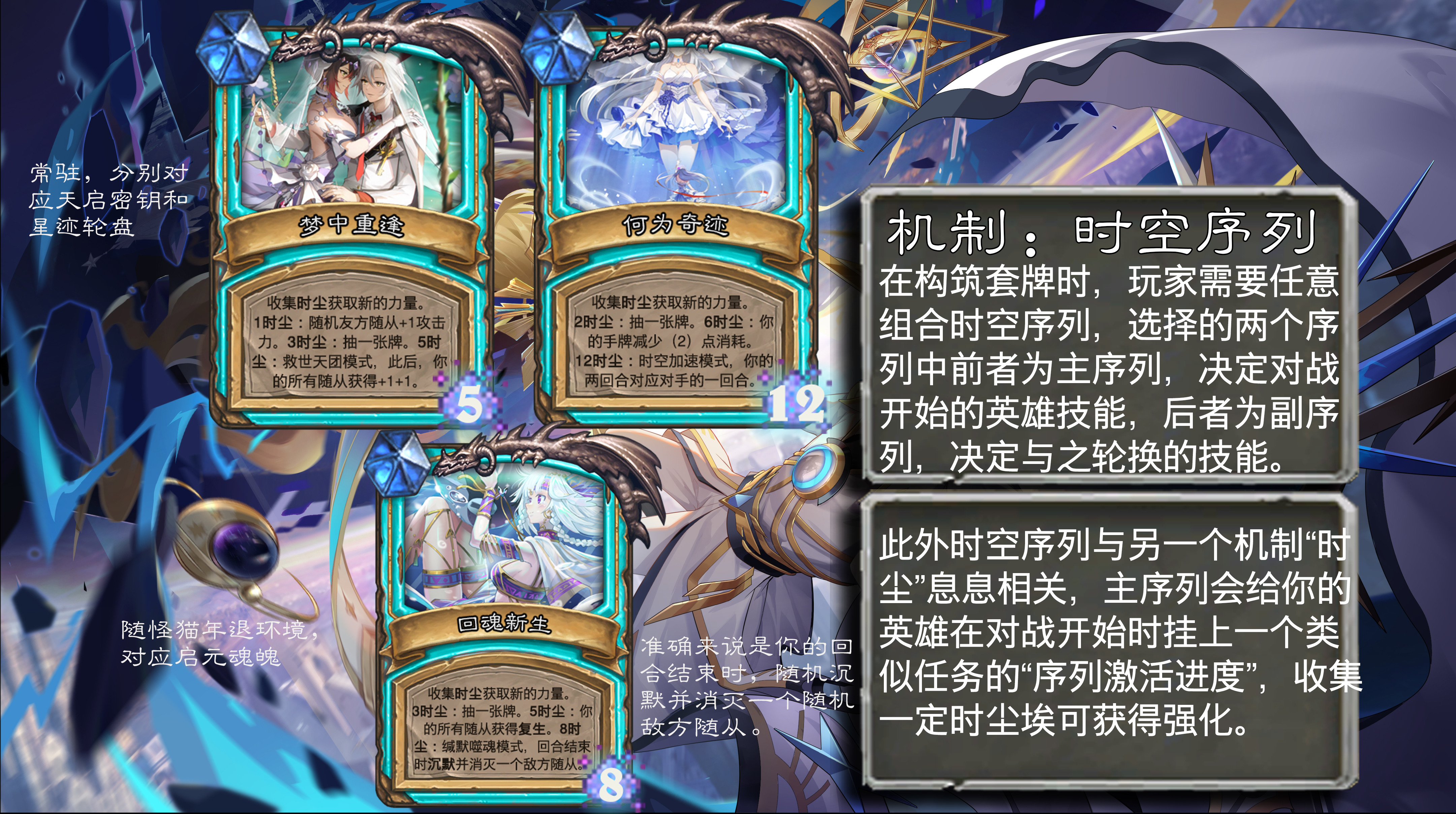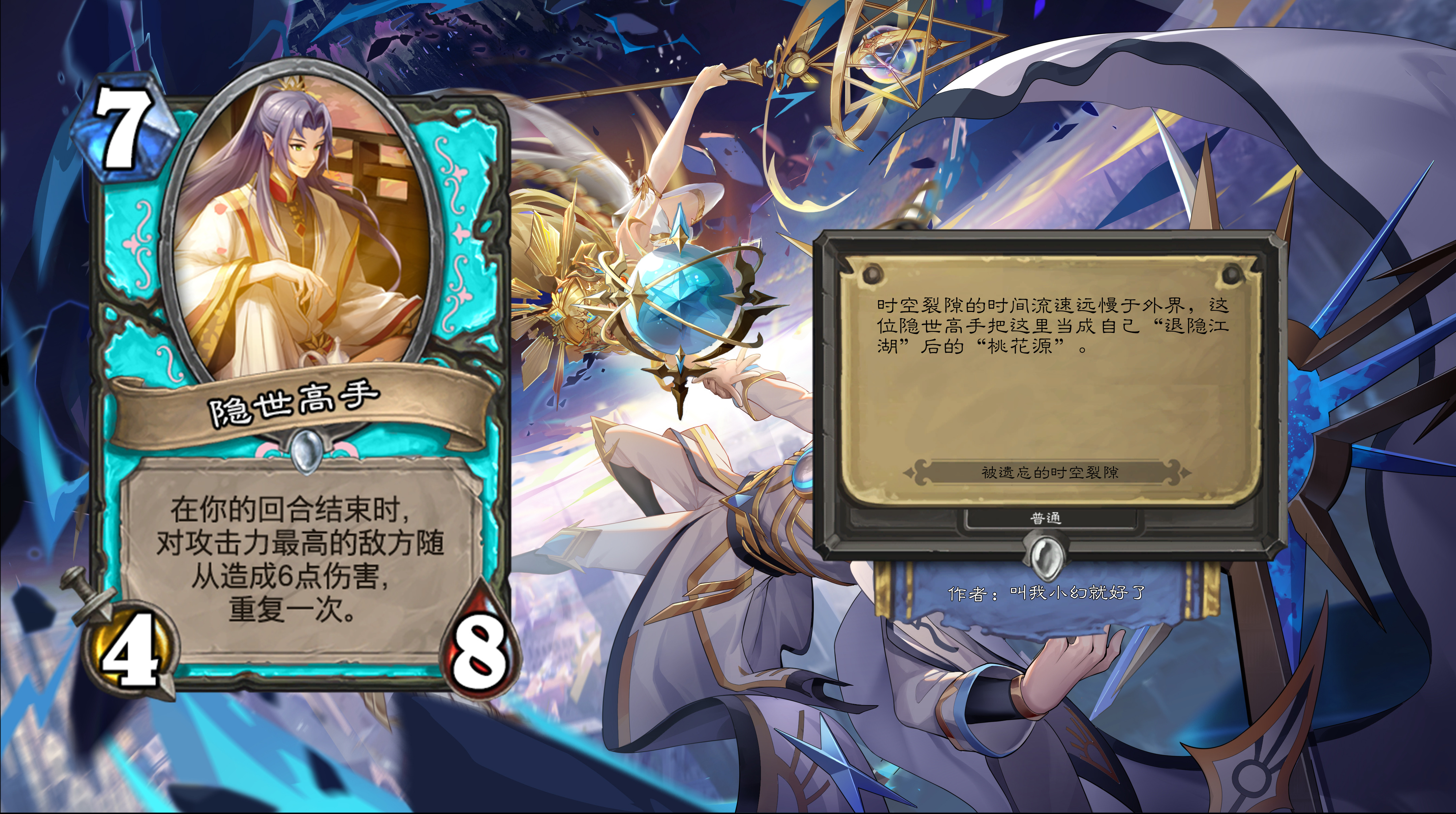 怪猫年首个拓展包“弥天大谎”上线时,我们还会推出独立的时空旅者系列“被遗忘的时空裂隙”,帮助时空旅者追赶其他职业,包含20种不同的时空旅者卡牌,帮助你和其他职业切磋牌技。(暴打其他职业)