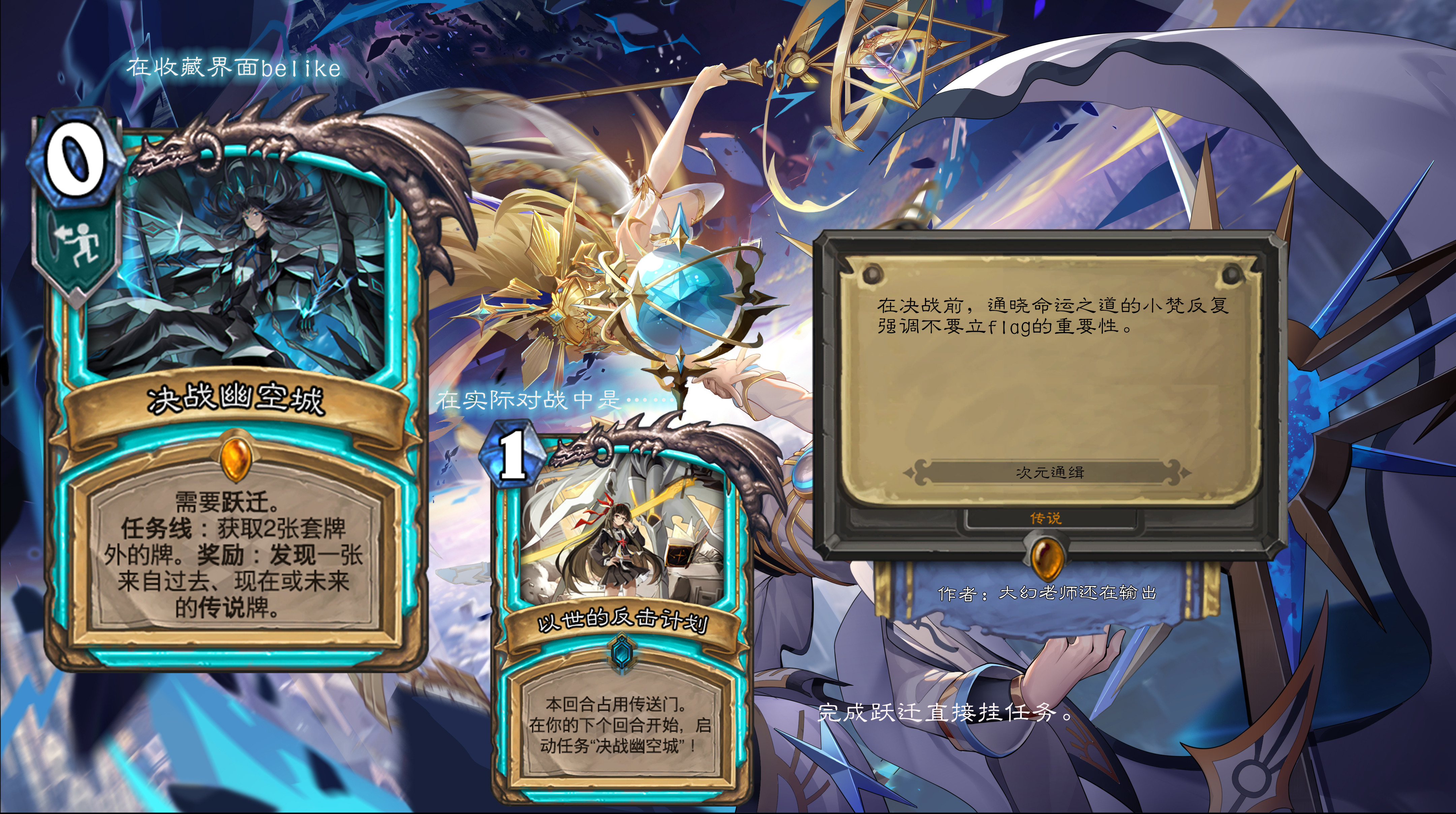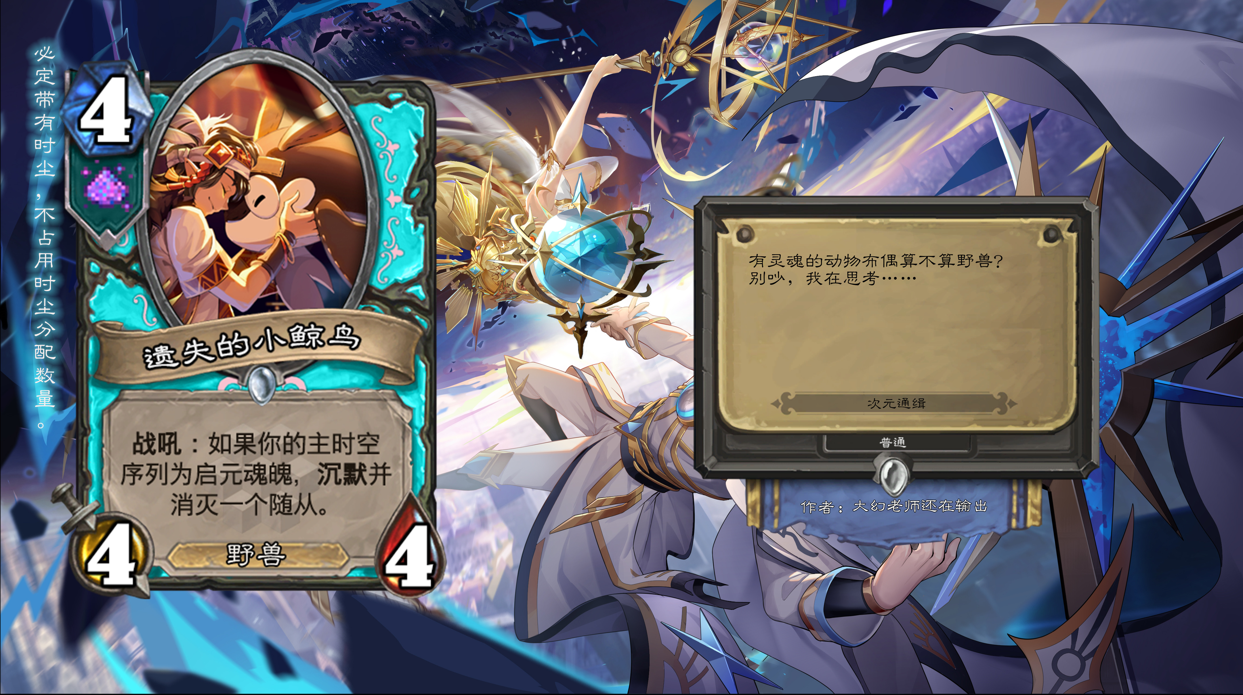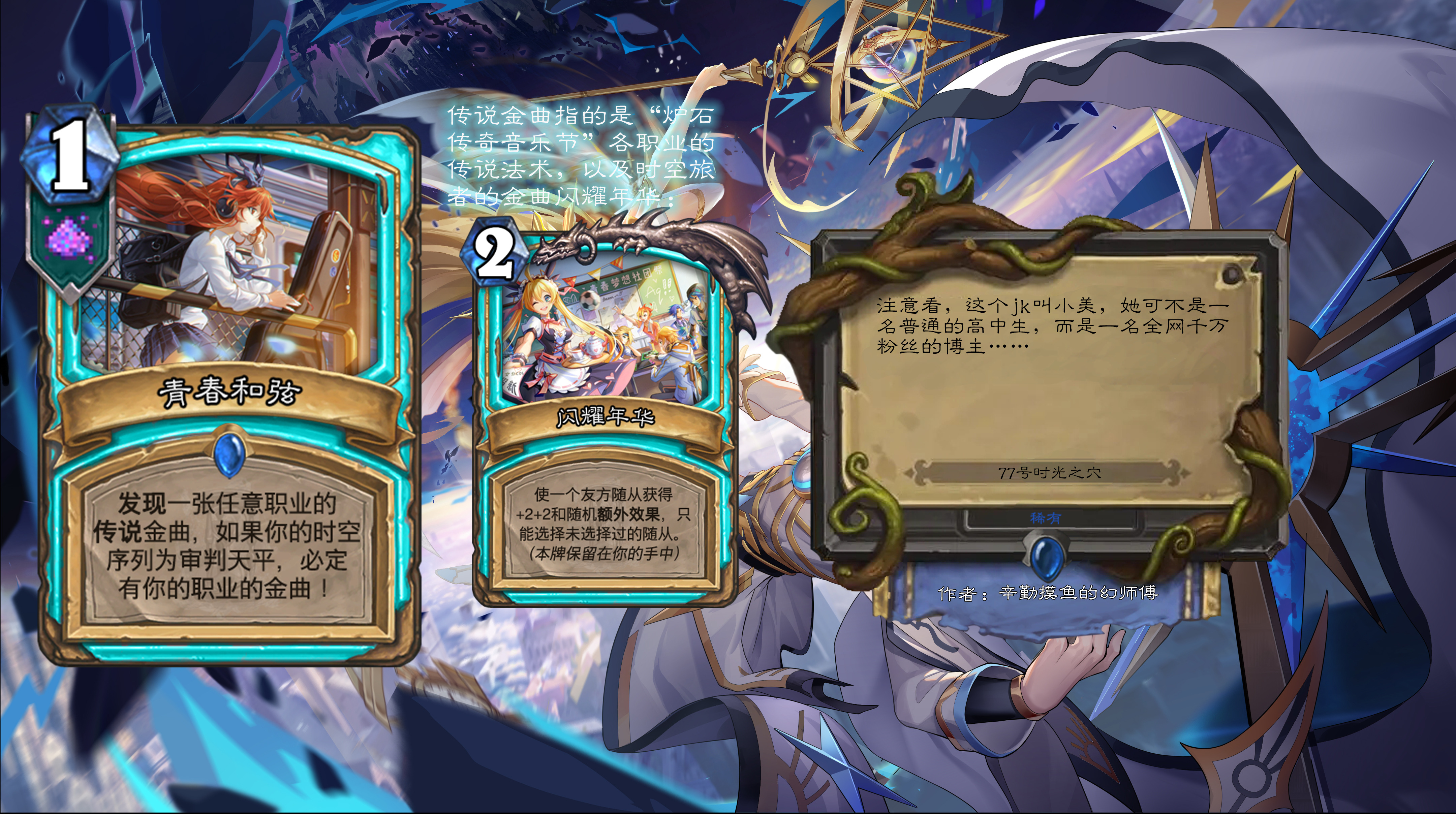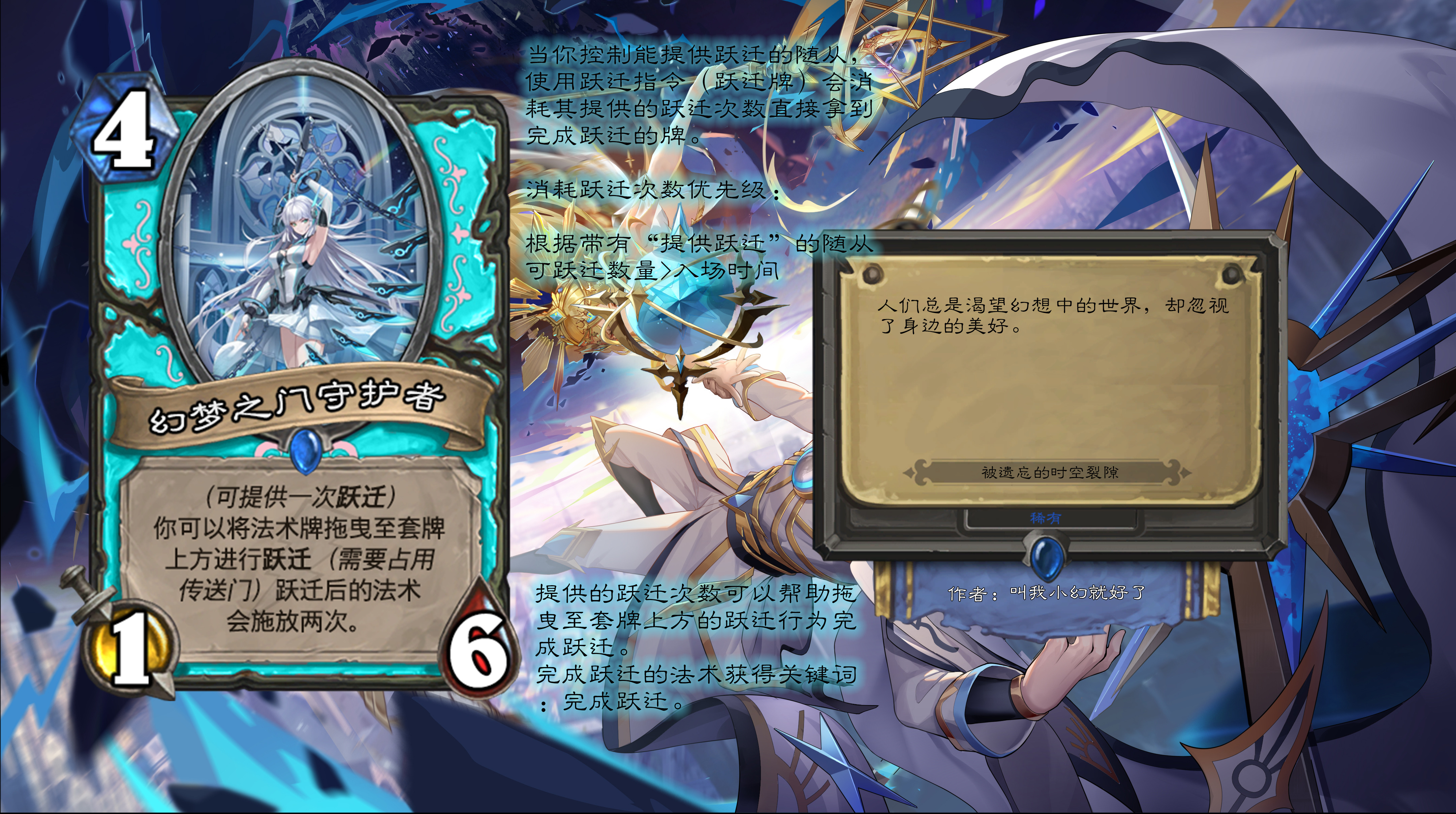 怪猫年首个拓展包“弥天大谎”上线时,我们还会推出独立的时空旅者系列“被遗忘的时空裂隙”,帮助时空旅者追赶其他职业,包含20种不同的时空旅者卡牌,帮助你和其他职业切磋牌技。(暴打其他职业)