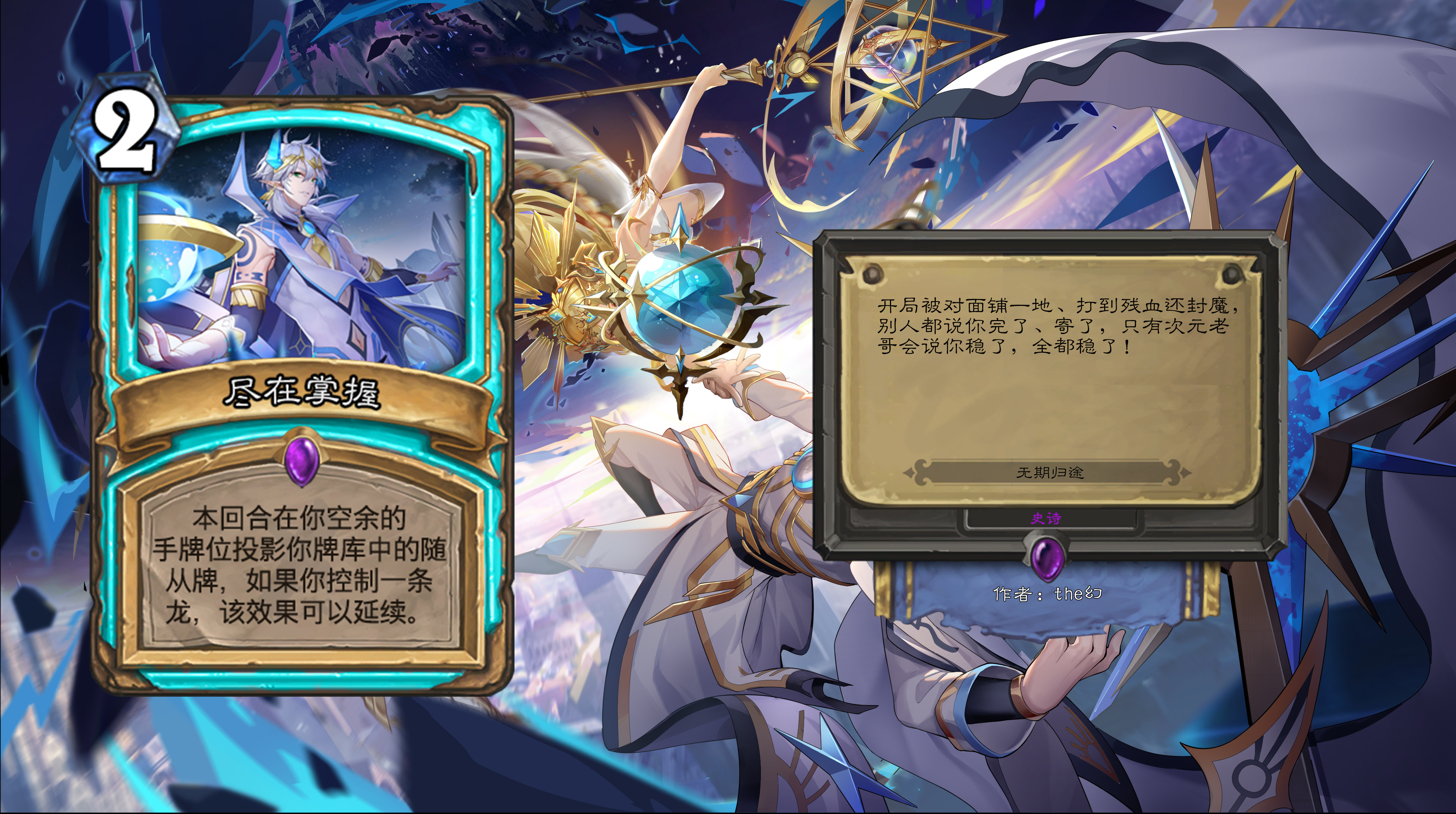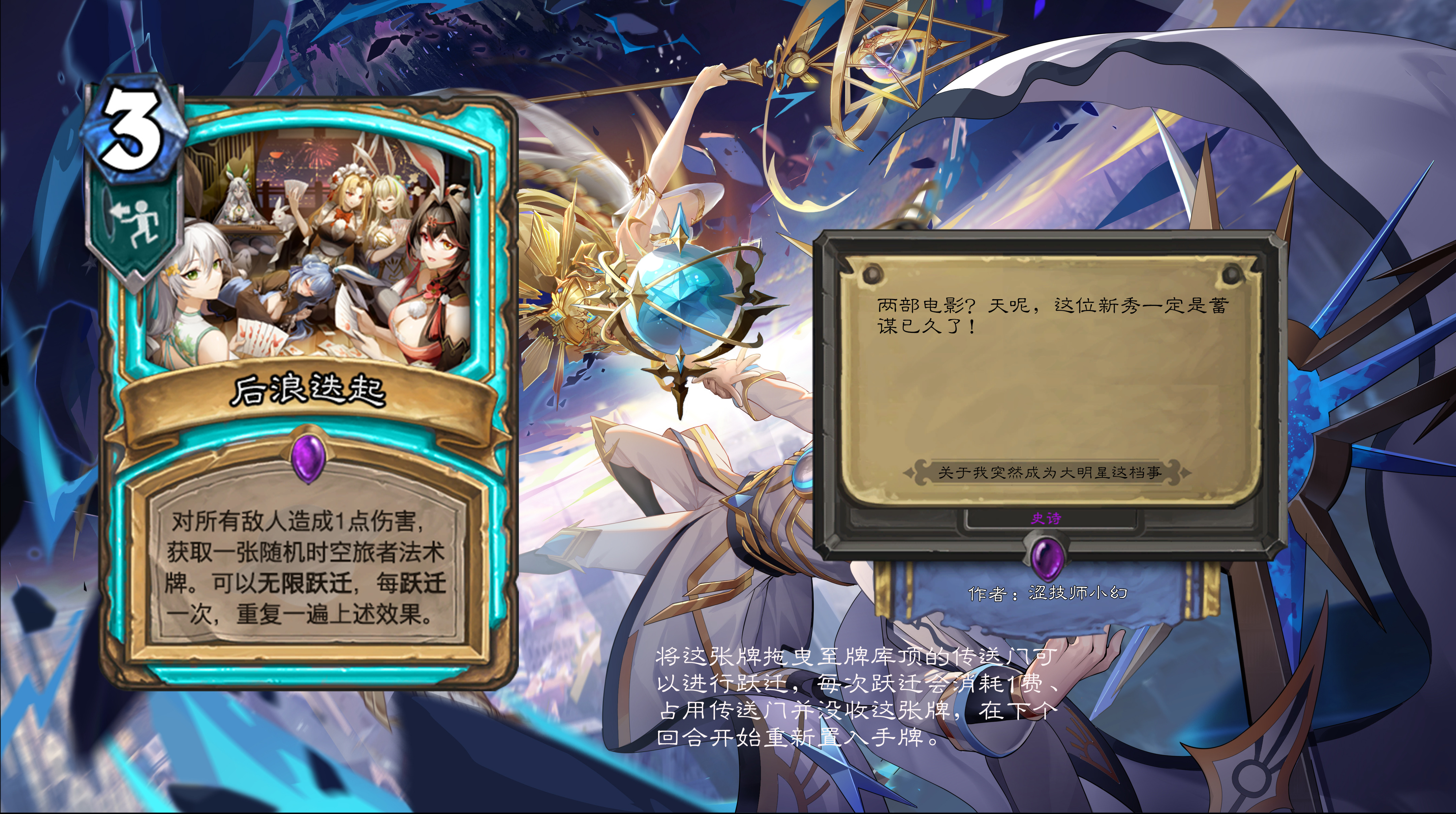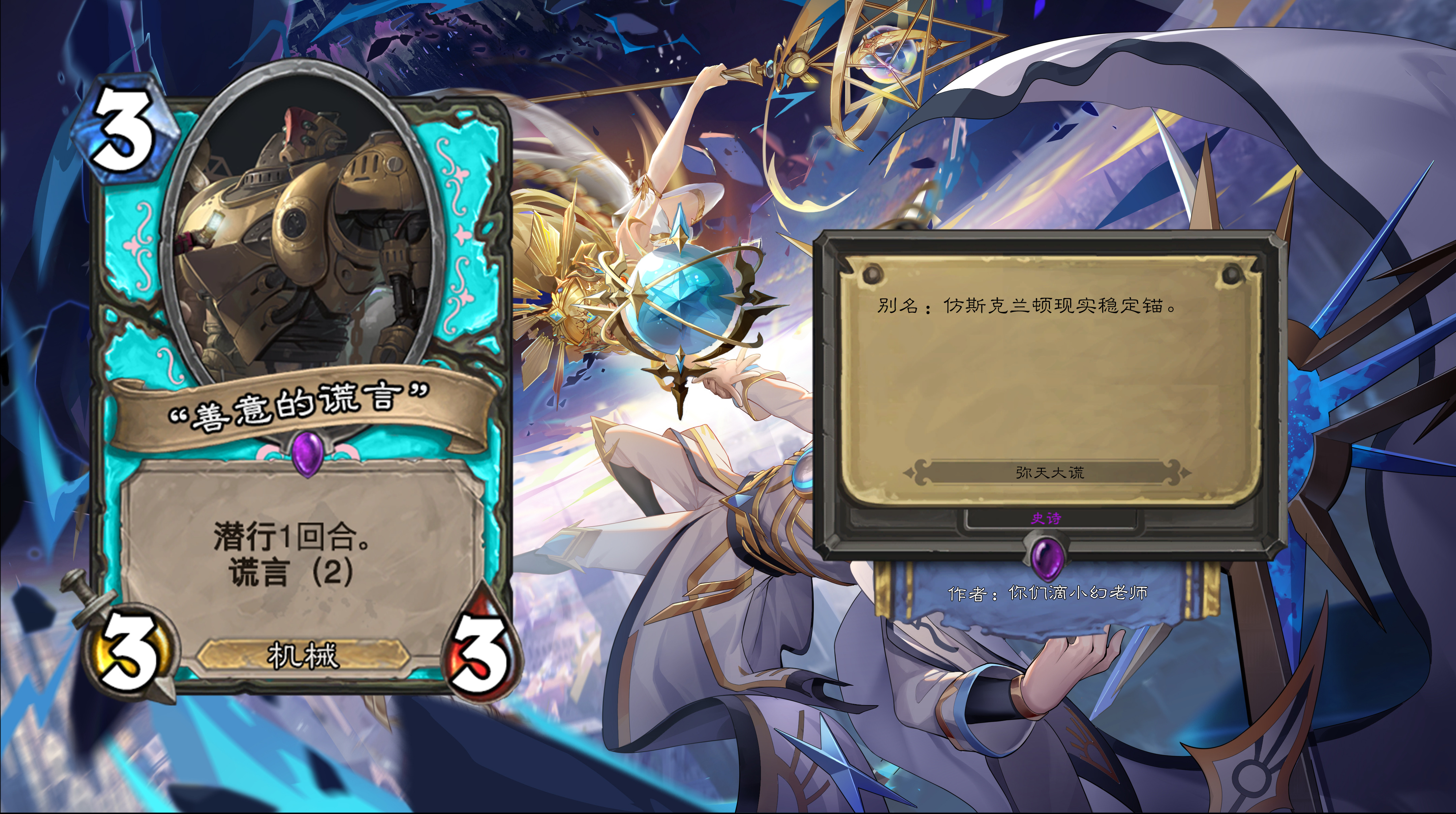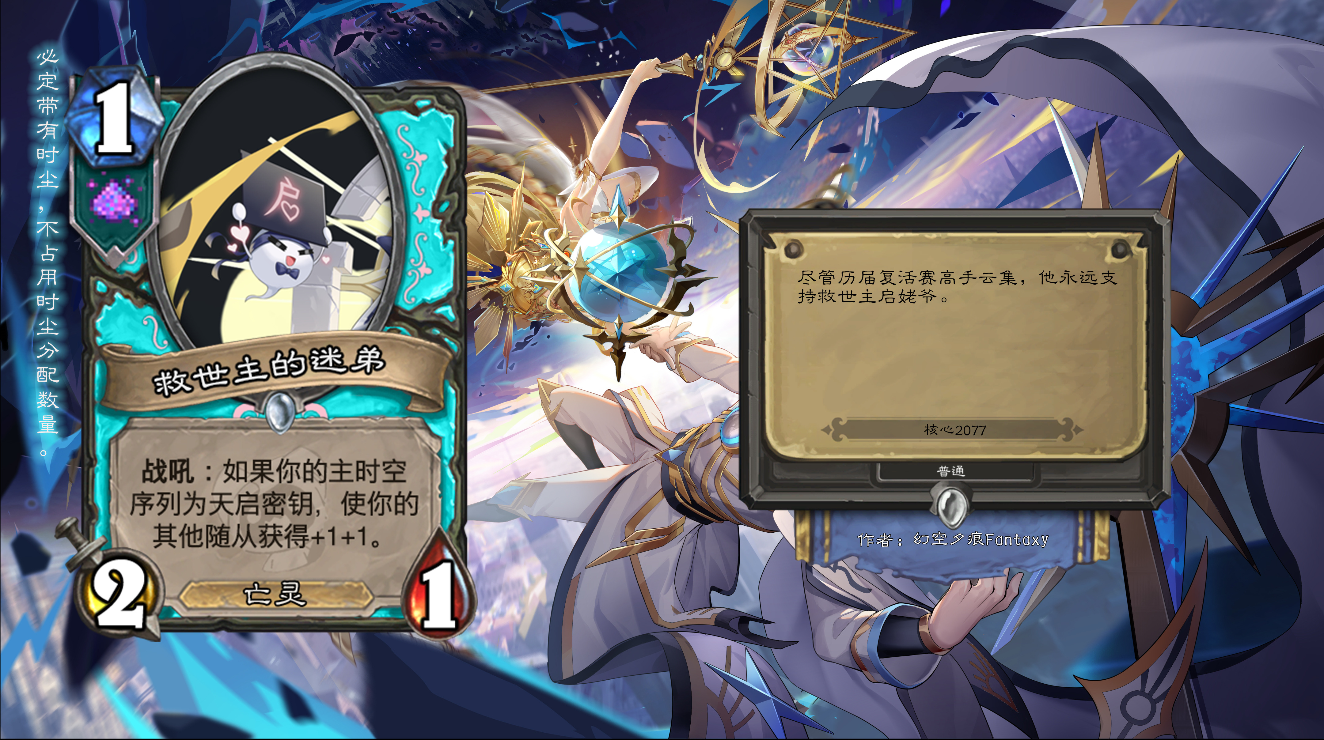 怪猫年首个拓展包“弥天大谎”上线时,我们还会推出独立的时空旅者系列“被遗忘的时空裂隙”,帮助时空旅者追赶其他职业,包含20种不同的时空旅者卡牌,帮助你和其他职业切磋牌技。(暴打其他职业)