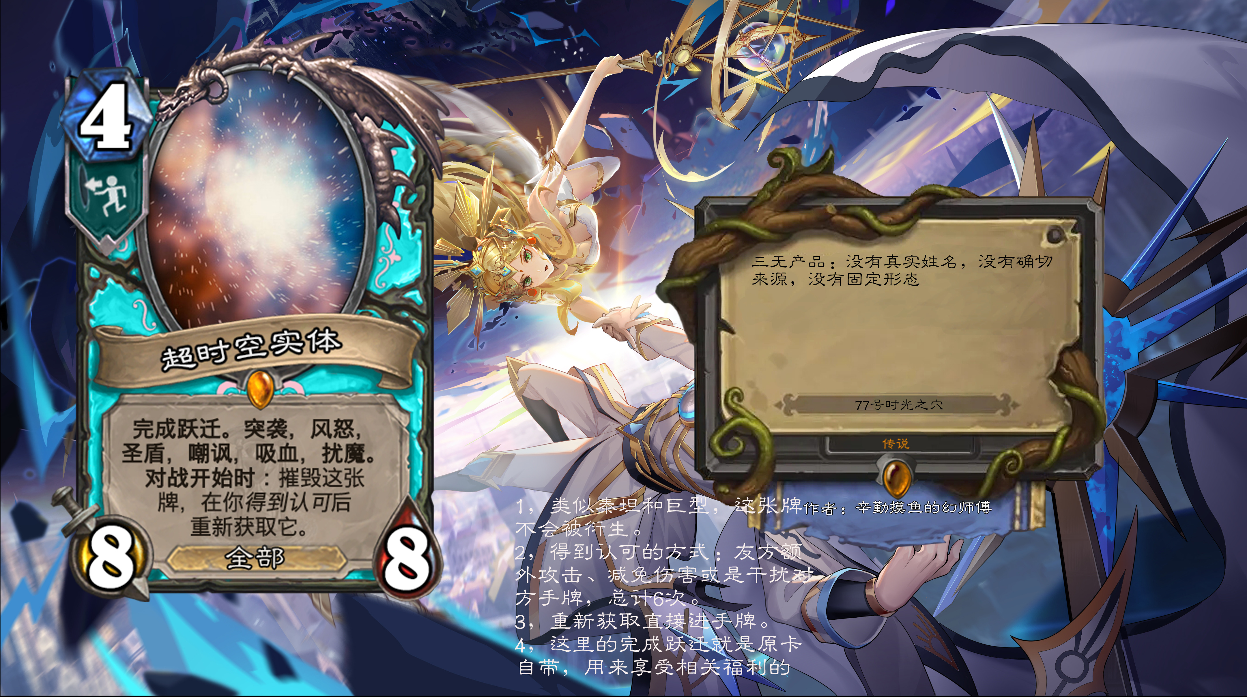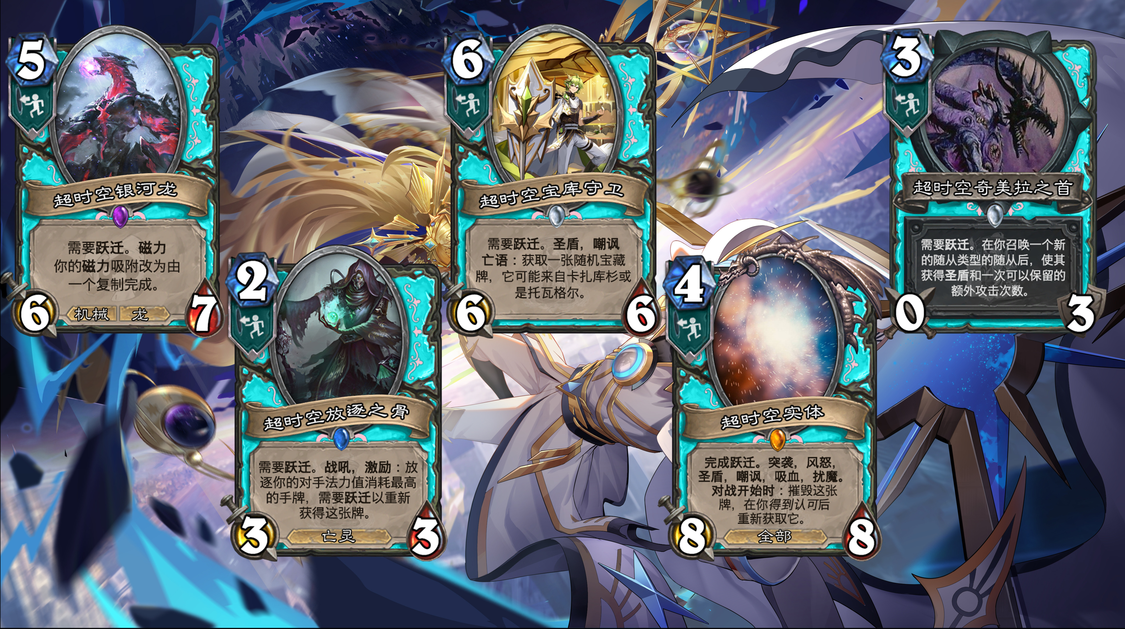 包括超时空银河龙,超时空宝库守卫,超时空奇美拉之首,超时空放逐之骨,超时空实体(大伙应该都发现超时空牌的画风大多都挺怪的……)