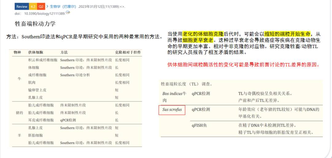根据 Shiels 等研究员的研究,多莉羊的端粒就是比正常羊短了 20% ,端粒并没有被修复。