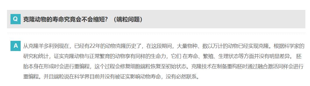 但是,如果你再多查一下,会发现多莉羊基因克隆出来的四个姐妹,寿命却又是正常的。