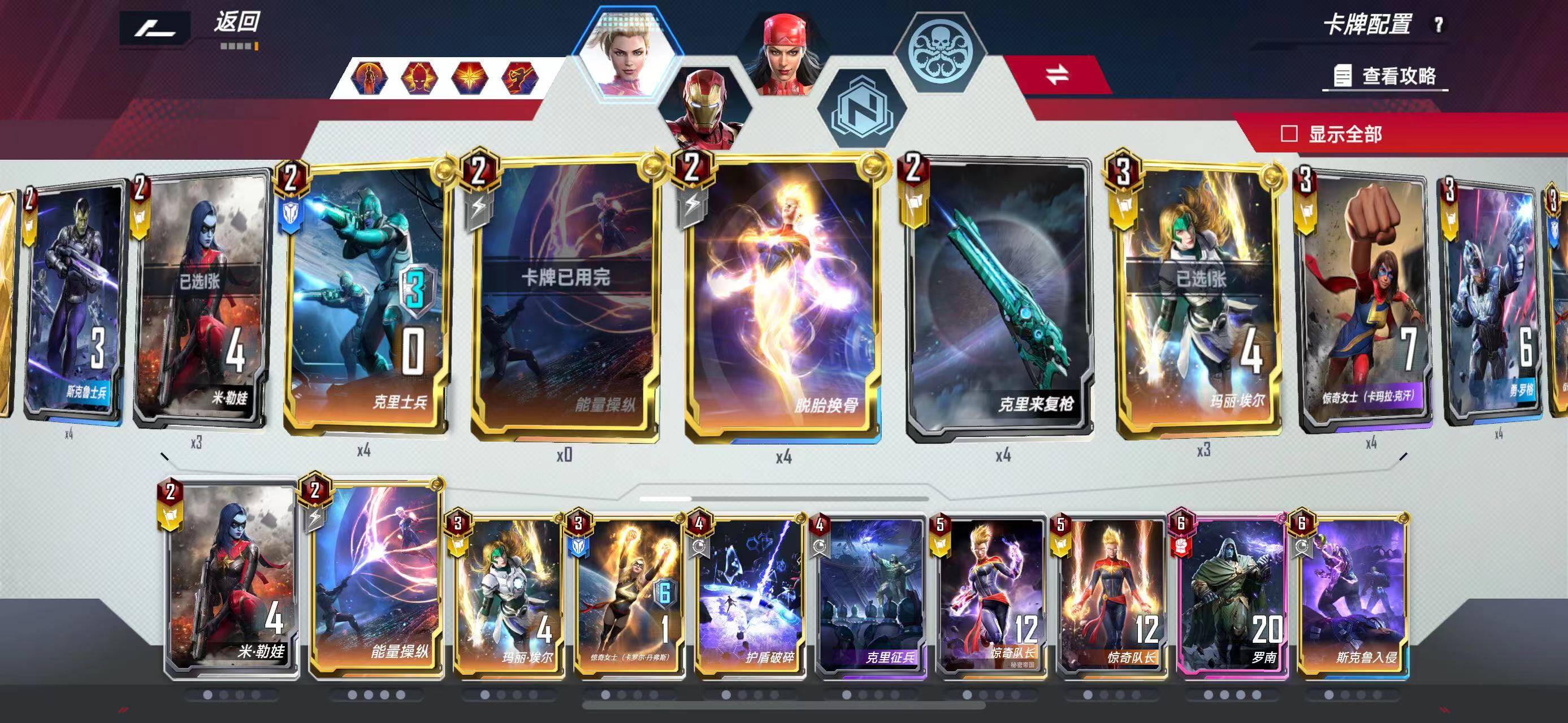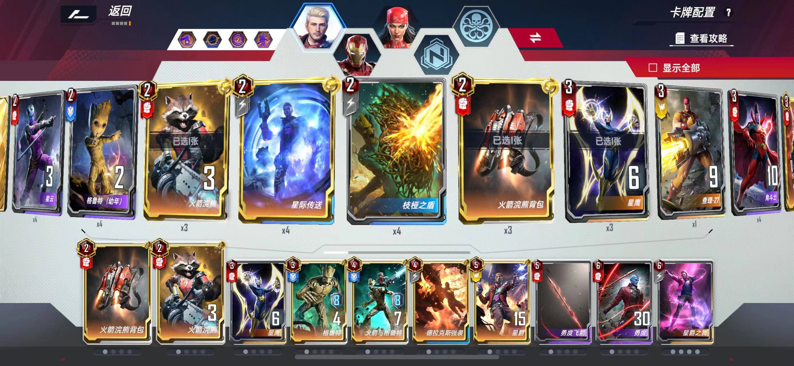 接下来是辅助的选择,选择挺多的,我试过的2套,其实理论上海拉的4败1费刷新也挺适合的,其他的也都行,反正最后都是变任务,谁变不是变呢。我是选择了星爵和惊队。