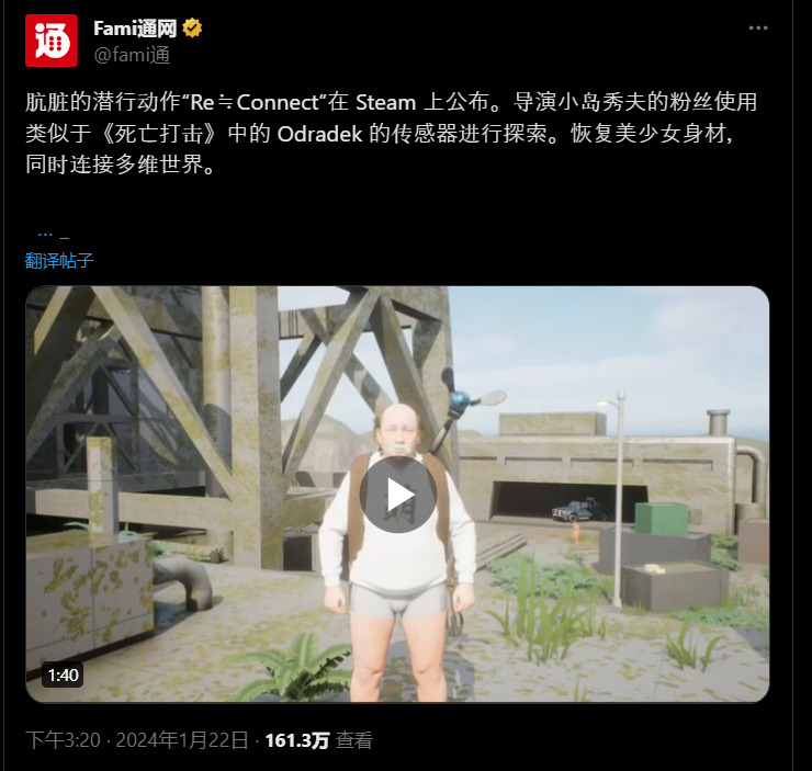 无论是小岛秀夫的《死亡搁浅》,还是粉丝制作的《Re≒Connect》,两款游戏都在尝试打破“电子游戏”的常规框架,探索“电子游戏”和“同人游戏”的新领域。