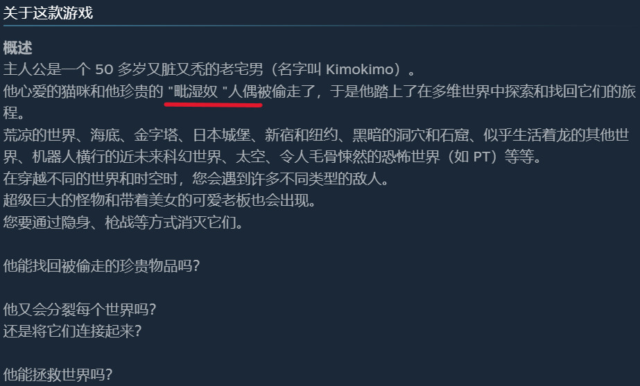 所以,玩这些带着“Kuso”气质的游戏,让玩家们体验到不同于“正经大作”的趣味时,才让游戏世界有了荤素不忌、包罗万象的感觉,不然天天玩大作,钱包也瘪得快。