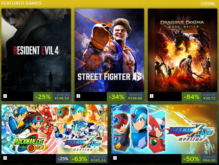 活动页面:https://store.steampowered.com/sale/CapcomPubSale