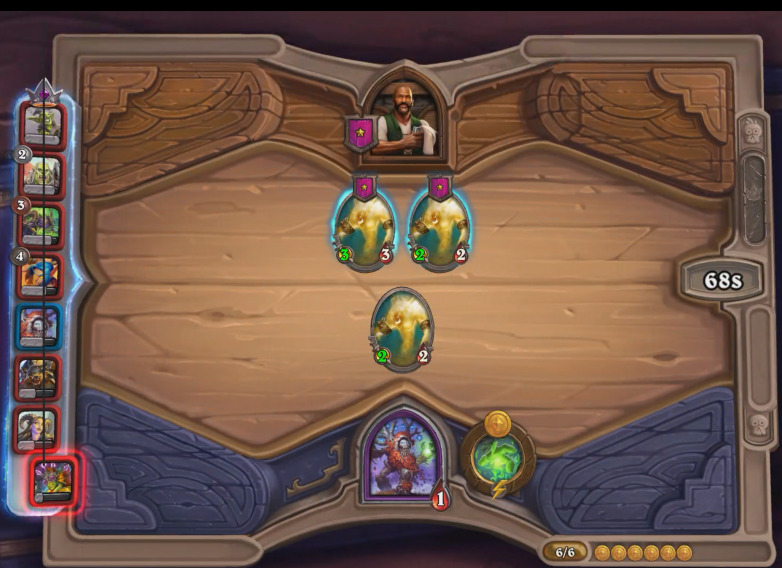 注意为了便于平局,有些技能效果作用于战斗阶段的英雄尽量不要选,否则另行增加计算难度(不过Celestalon后来说奥秘哥的冰箱是有用的)。这也是为什么光耀之子是这个特殊战棋对局的唯一随从,它的特殊机制确保了只要总生命值一致就一定能打平。同时,这也印证了成就提示,“八个胜者”即没有输家,它和“八个回合”都是过关条件。