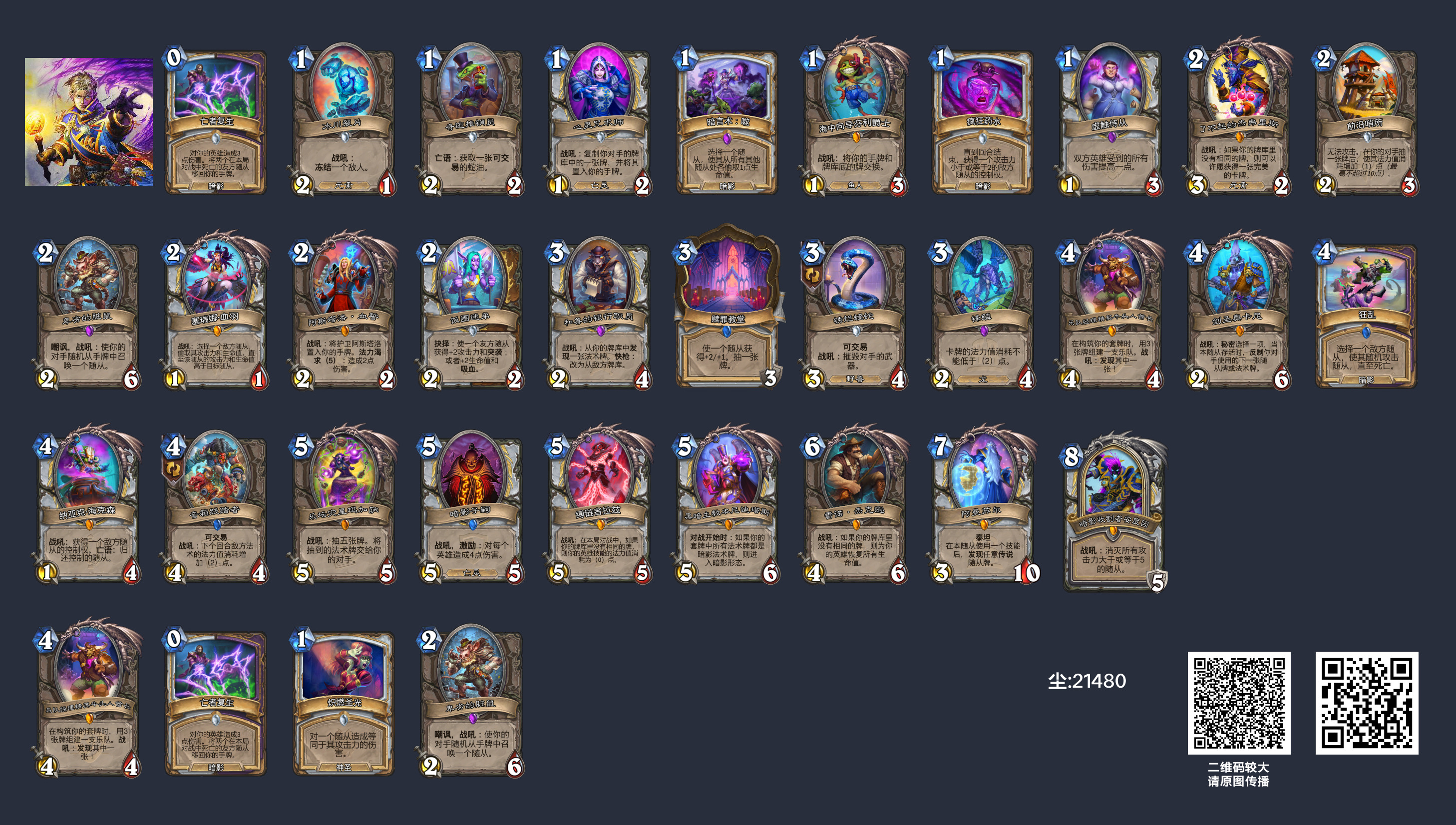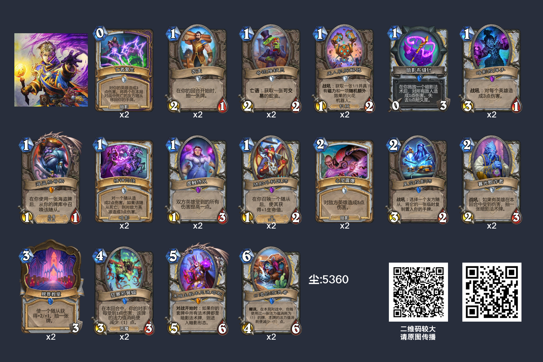 - 天梯卡组: 奇迹贼、宇宙暗牧、快攻暗牧、大哥萨