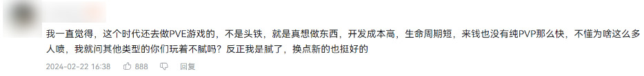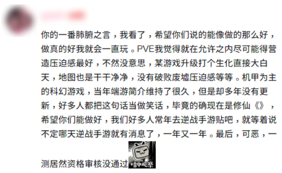 在这种期待的驱使下,玩家们的指责和嘲讽其实更像是一种 “ 鞭策 ” —— 项目组你给我好好加油,别让大家失望。