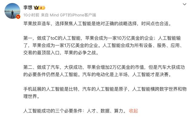 对苹果而言,通关了 AI 再回来刷汽车副本,指不定比现在正面突破还更轻松呢?