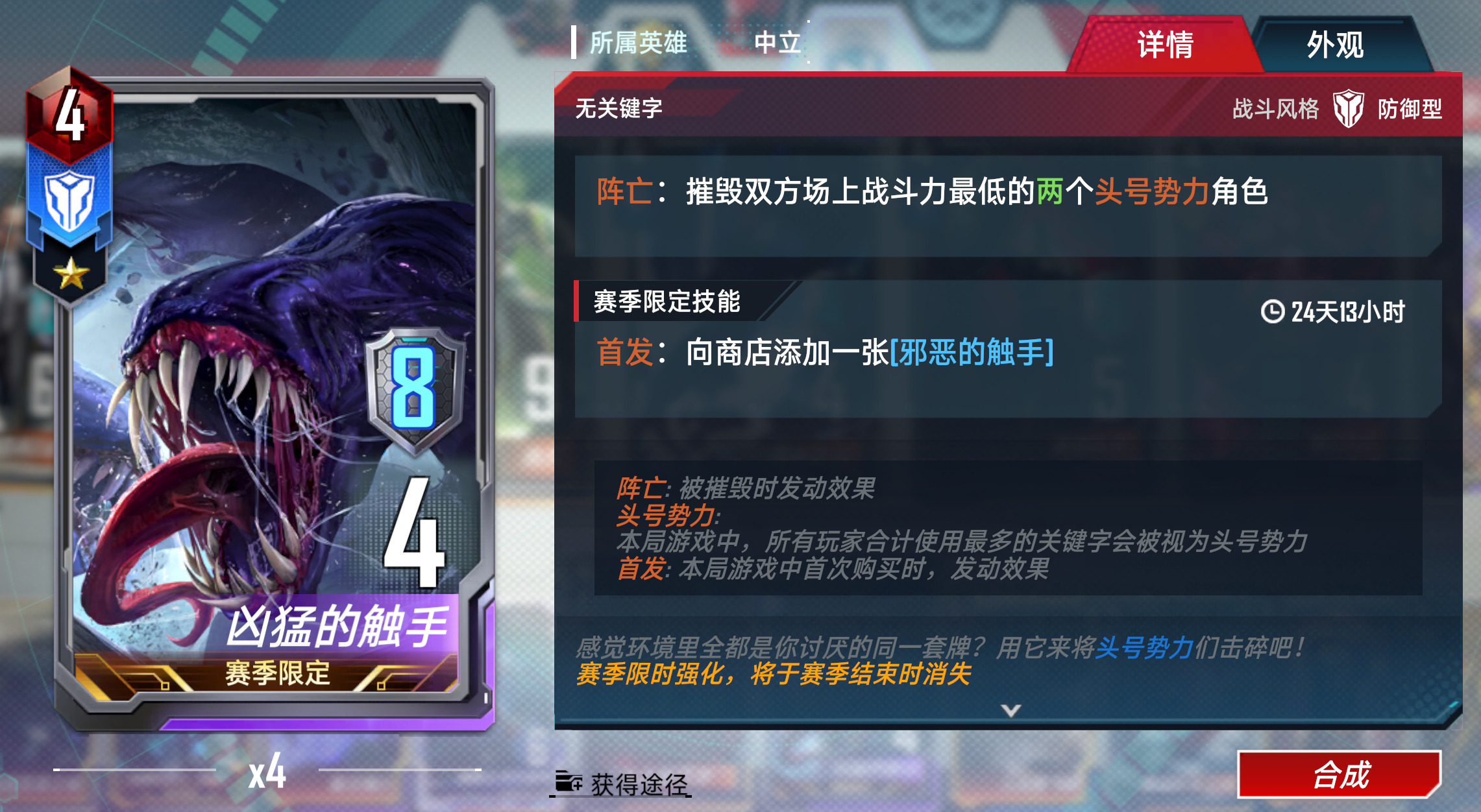 2、大众针对卡,头号势力的噩梦。本赛季首发送触手,也是不错的养大选择。