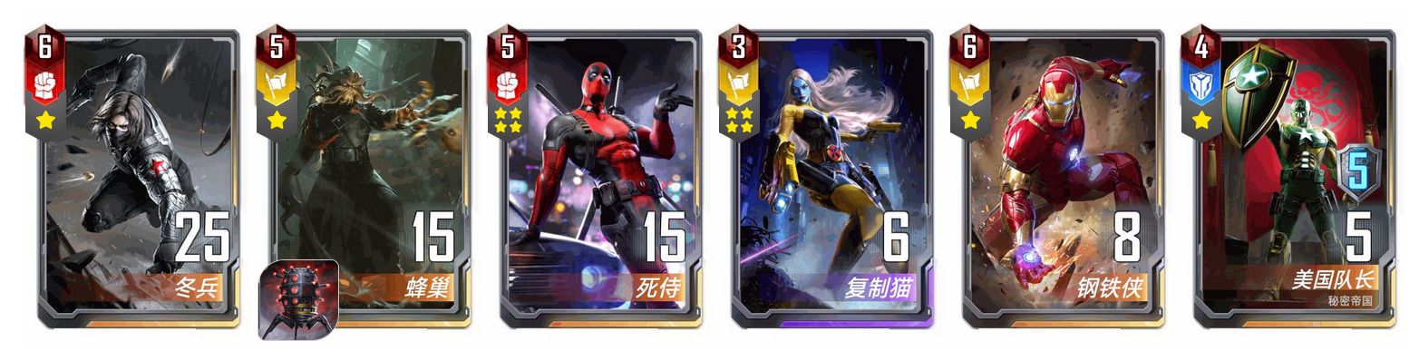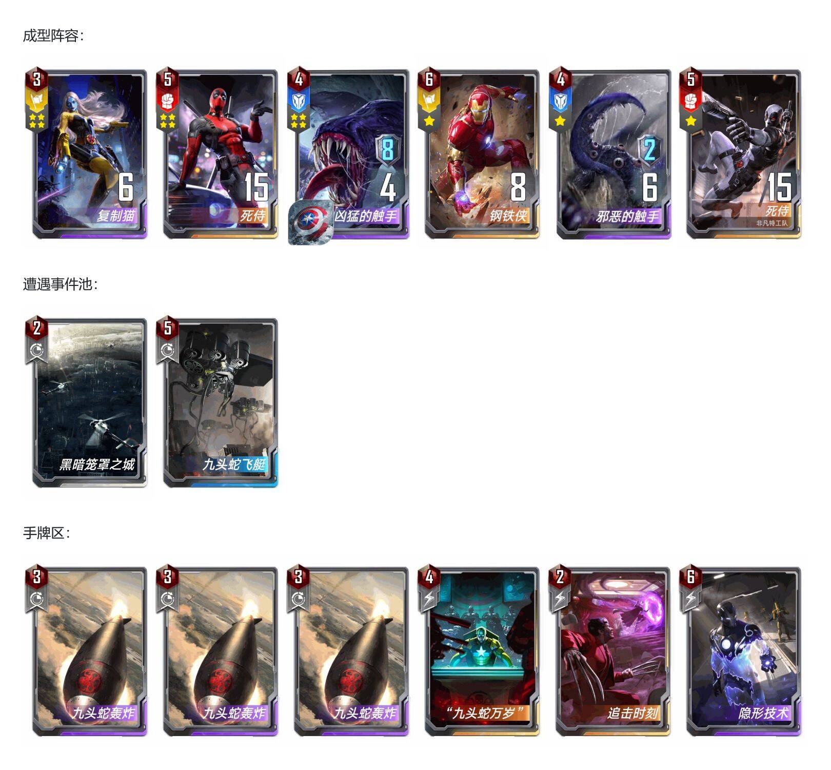 1,不是九头蛇阵容攻略,思维跳跃一下。属于死侍的针对性更多(但是注意是蛇锁优先,咔咔648猛如虎)